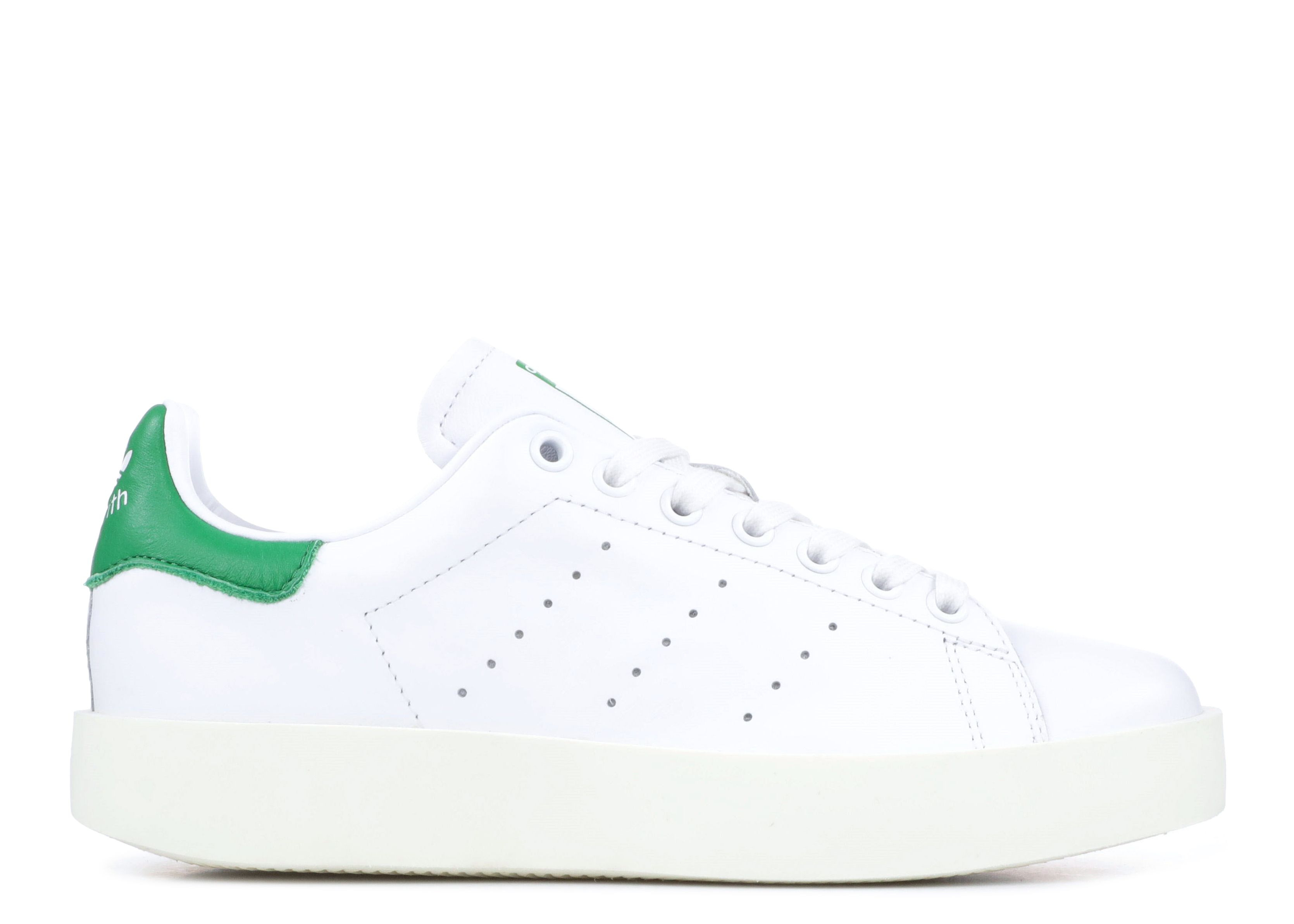 The Wmns Stan Smith Bold 'White Green' brings a familiar look to an updated construction. The shoe's premium white leather upper incorporates the usual perforated Three-Stripes on the side wall, with the classic green on the heel patch and tongue tab. The stacked EVA midsole sports an off-white finish. SKU: S32266 Colorway: White/Green Release Date: 1/7/17