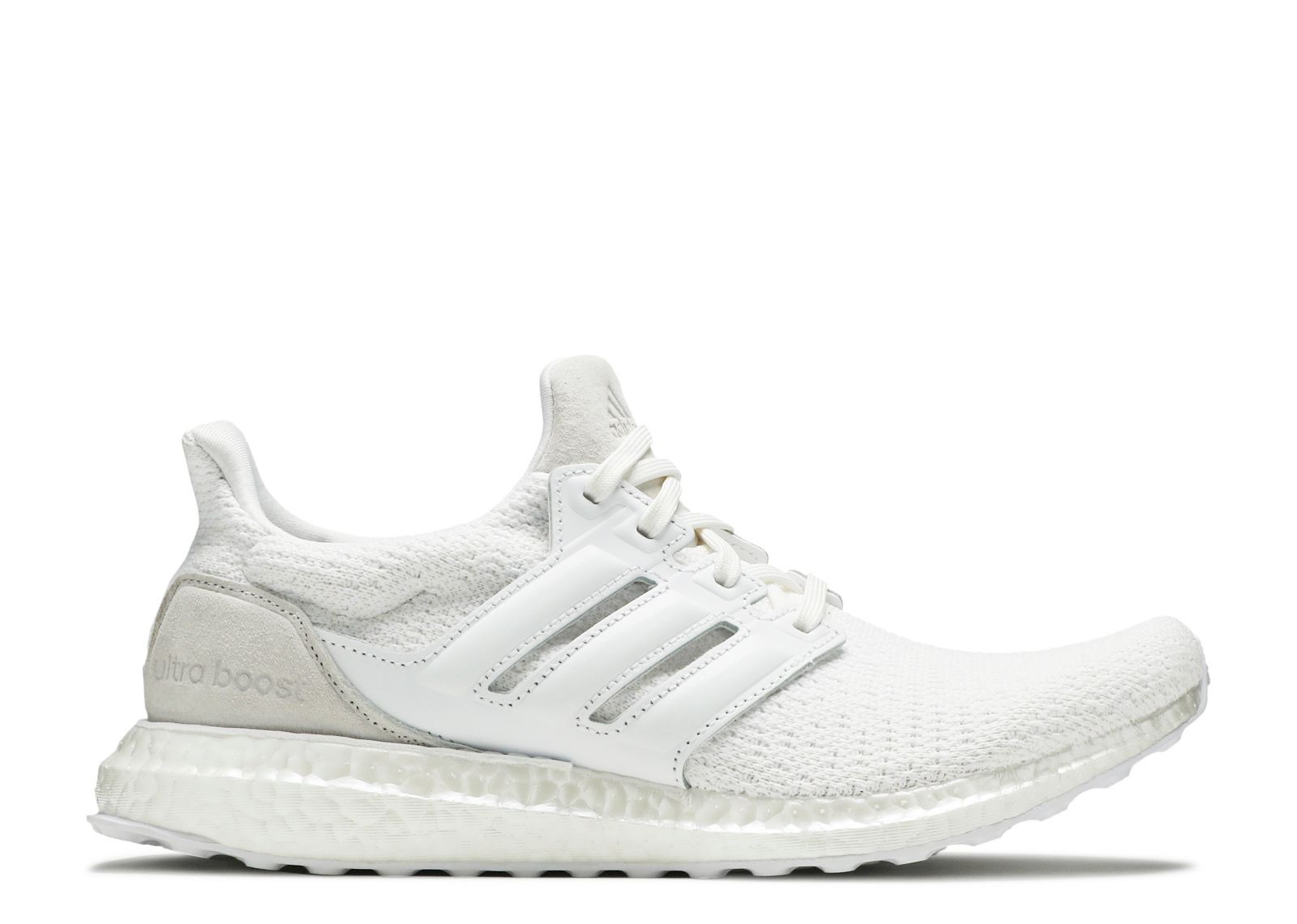 The Wmns UltraBoost DNA 'Cloud White' features a neutral colorway on its performance running construction. Built with Primeknit, the upper appears in white, with a leather midfoot cage worked into the lacing system. The tongue and heel counter emerge in off-white suede, while underfoot, a Boost midsole provides cushioning. A Continental rubber outsole is included for traction. SKU: FW4901 Colorway: Cloud White/Cloud White/Chalk White Release Date: 3/15/20