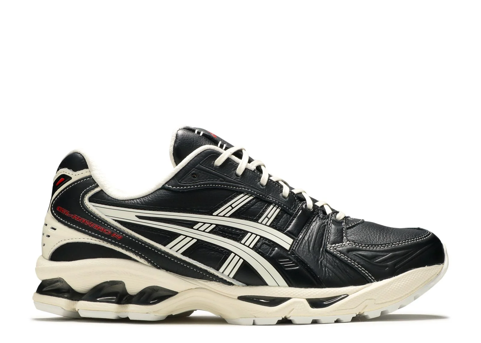 Inspired by Japanese craftsmanship, the Gel Kayano 14 'Monozukuri' emerges with a premium construction. The shoe's upper is built with black leather, contrasting by white detailing throughout, including on the Tiger stripes and waxed laces. The tongue and heel bring color to the look via red hits on the branding, while underfoot, the EVA midsole incorporates visible Gel in the heel and midfoot for cushioning. SKU: 1201A179 001 Colorway: Black/Cream Release Date: 2/13/21