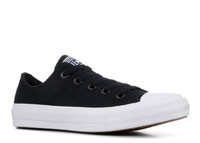 Debuting in 1957, the Chuck Taylor All Star 2 Ox sneaker from Converse takes influence from a classic men's style. This version—released in December 2018—is dressed in lightweight black canvas with a white toe cap and tonal metal eyelets. Dual-toned labels accent the tongue and heel. The upper is contrasted by a white vulcanized rubber sole reinforced by a textured bumper and traction-ready Waffle tread. SKU: 150149C Colorway: Black/White Release Date: 1/1/19