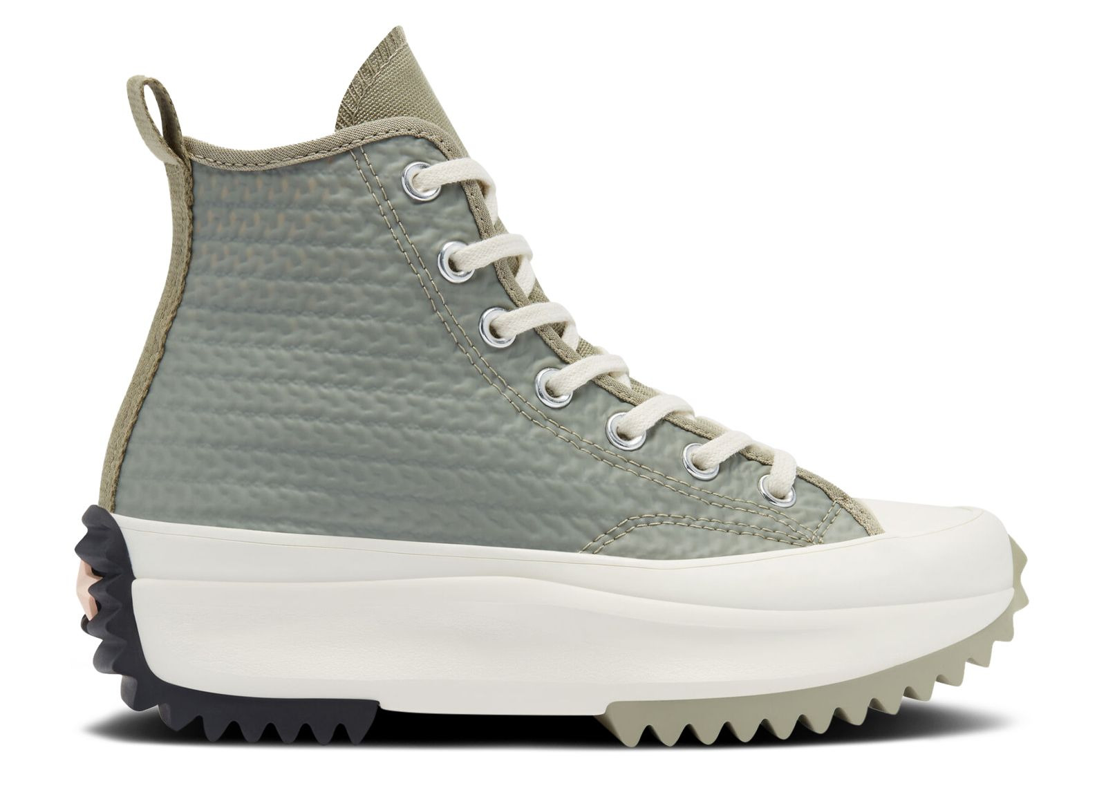 The Run Star Hike High 'Alt Exploration - Light Field Surplus' released as part of Converse's Alt Exploration series. Built with coated textile, the shoe's upper appears in green, with a lighter green on the trim, heel strip and tongue. The upper also calls out the Chuck Taylor via an All Star ankle patch, chrome eyelets and a reinforced rubber toe cap, while underfoot, a platform midsole and exaggerated rubber at the forefoot and heel anchor the build. SKU: 170247C Colorway: Light Field Surplus Release Date: 2/18/21