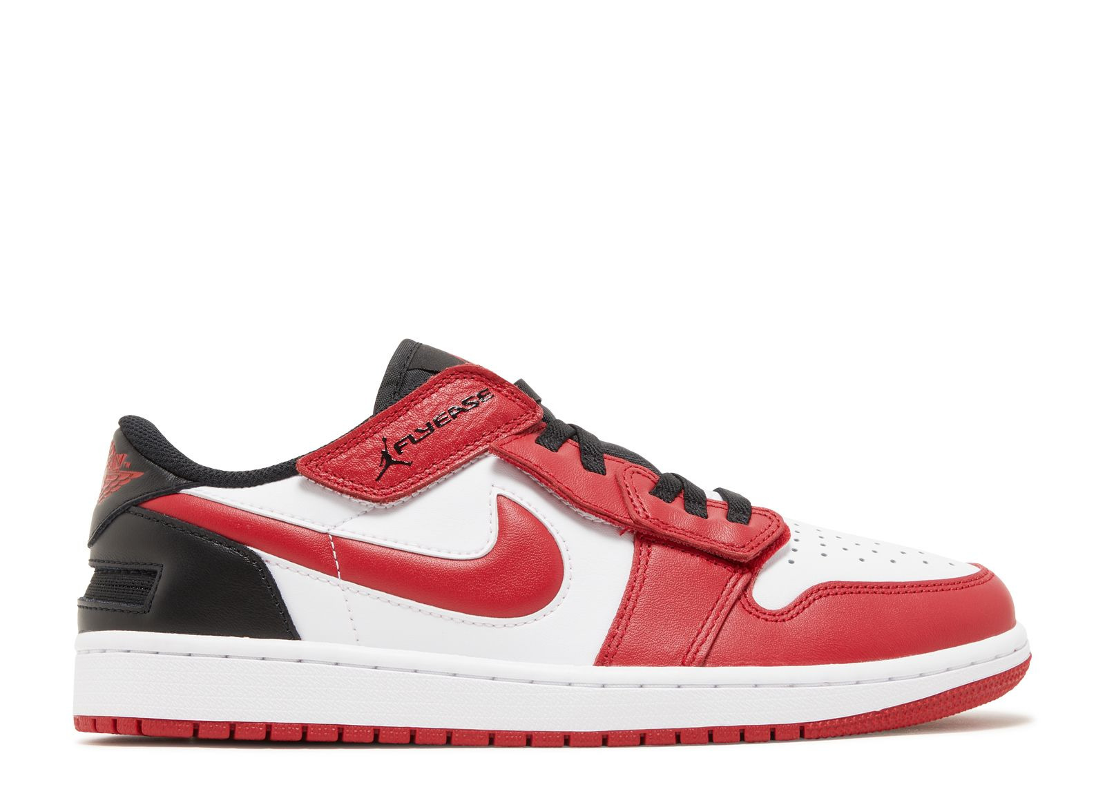 The bold colors of the Chicago Bulls and an effortless closure arrangement distinguish the Air Jordan 1 Low FlyEase ‘White Gym Red.’ A crisp white base establishes the upper and combines with overlays in red at the heel and forefoot. No-tie laces, a strap with hook-and-loop closure and a zipper that extends around the heel and collar make the shoe easy to put on and take off. Underfoot, optimal support and comfort are ensured by the traditional rubber cupsole with an Air-sole unit. SKU: DM1206 163 Colorway: White/Black/Gym Red Release Date: 6/16/22