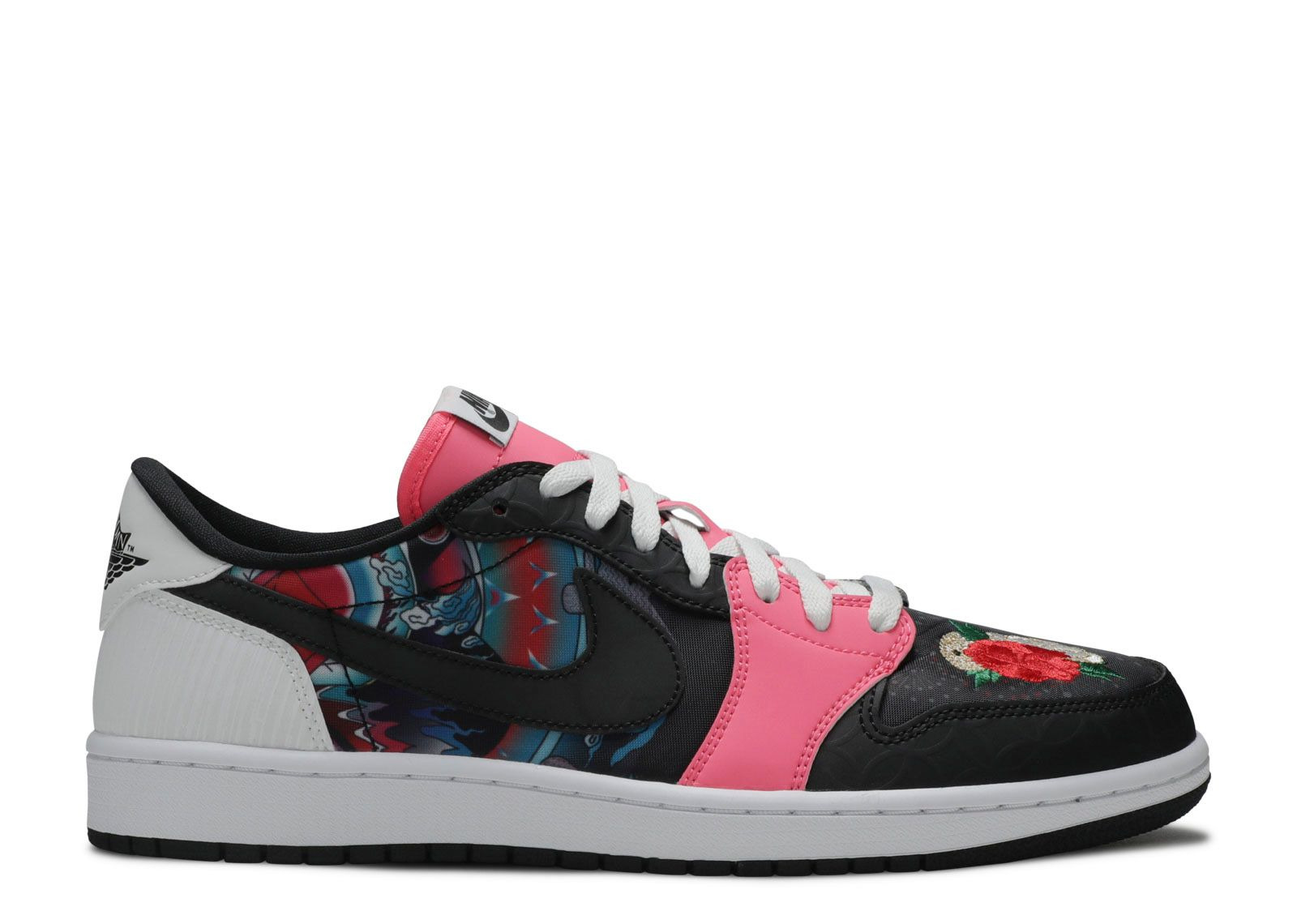 Releasing for the Year of the Rat, the Air Jordan 1 Low OG 'CNY' features a mismatched look. Both shoes feature a different mix of materials and color blocking, with graphics on the toe box and quarter panel. The shoes share a pink tongue and 3M reflective detailing on the heel. SKU: CW0418 006 Release Date: 2/1/20