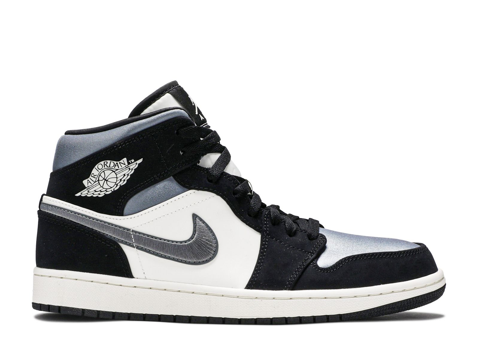 The Air Jordan 1 Mid SE 'Satin Smoke Grey' brings a neutral look to its classic basketball construction. Built with a white leather base, the upper is highlighted by shiny satin on the toe box, collar and Swoosh, with black suede on the overlays. The classic midsole houses Air in the heel for cushioning. SKU: 852542 011 Colorway: Black/Sail/Smoke Grey Release Date: 1/1/20