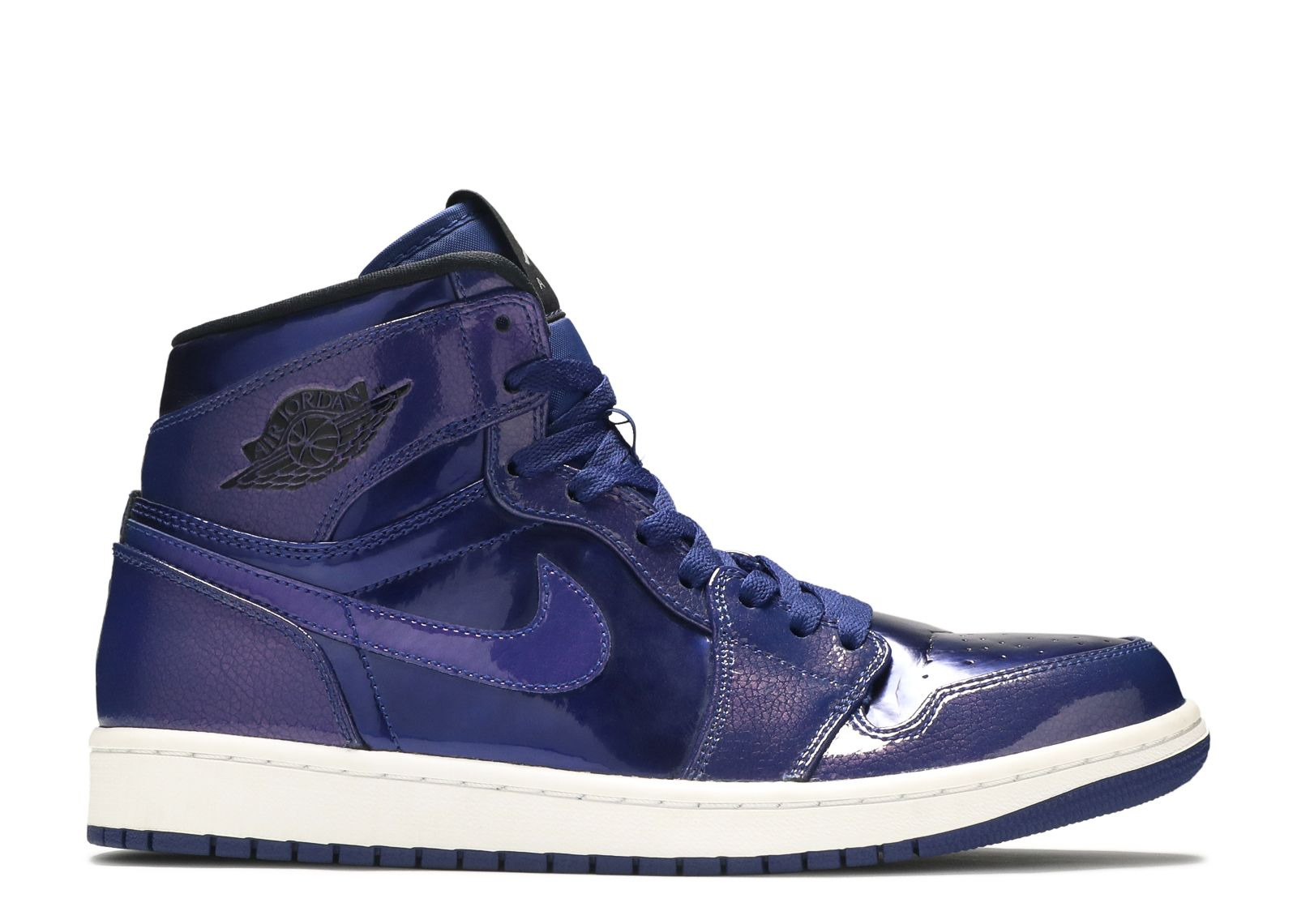 The Air Jordan 1 Retro High 'Deep Royal' features a Deep Royal upper with patent leather on the toe box, quarter panel and heel and textured leather on the overlays. The branding emerges in black, while the white midsole gives way to a tonal outsole. SKU: 332550 420 Colorway: Deep Royal/Black-White Release Date: 12/1/16
