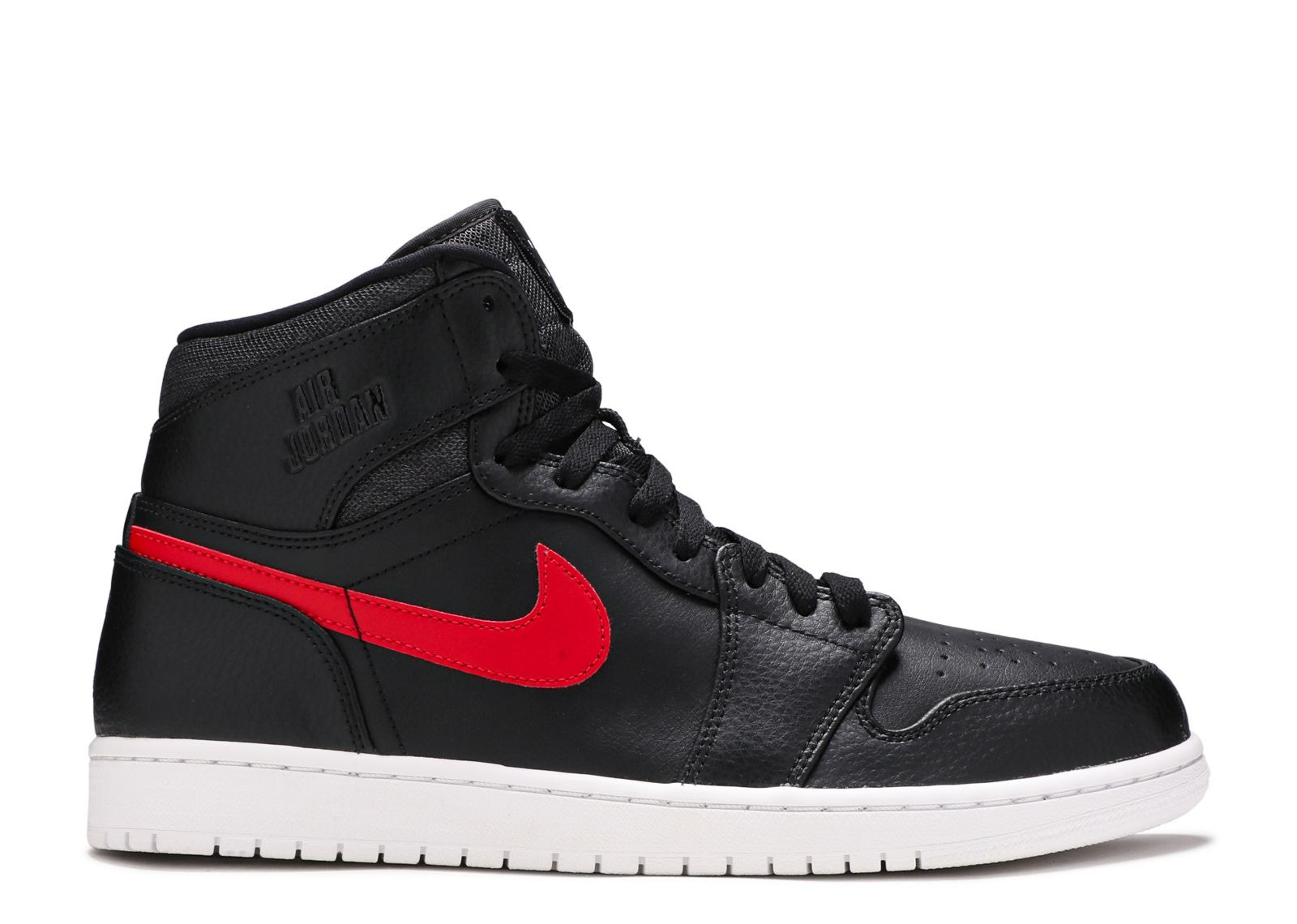 Releasing in 2015 as part of Jordan Brand's 30th anniversary celebrations, the Air Jordan 1 Retro High 'Rare Air' emerges with a new take on a 'Bred' look. Featuring a mostly black upper in smooth and tumbled leather, the shoe is accented by a Gym Red Swoosh. The tongue tag comes with a removable Rare Air patch, while the 'Wings' logo has been replaced with 'Air Jordan' worked tonally into the collar. SKU: 332550 012 Colorway: Black/Varsity Red/White Release Date: 7/14/15