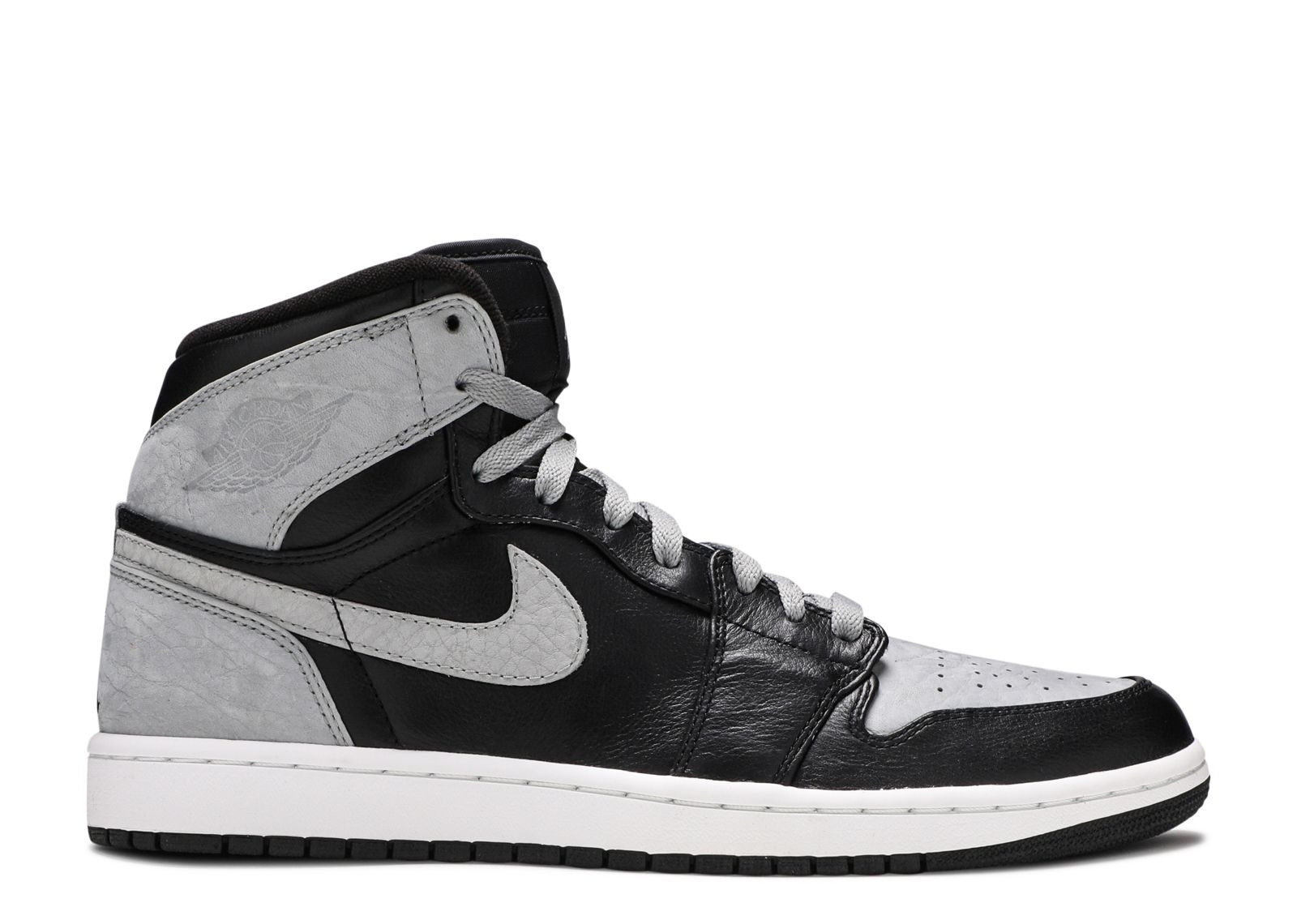 The 2009 edition of the Air Jordan 1 Retro High 'Shadow' brings back the OG colorway for the very first time. While the color blocking is identical to the original 1985 release, this version features textured grey leather at the toe box, heel, Swoosh and collar flap. Non-OG branding includes an embossed ‘Wings’ logo and Jumpman hits at the tongue tag and heel. SKU: 332550 001 Colorway: Black/Shadow Grey-White Release Date: 8/31/09