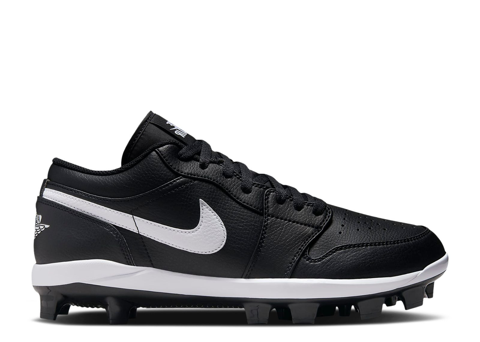 Inspired by the original Air Jordan 1, the Air Jordan 1 Retro MCS Low 'Black White' is a baseball cleat made of black synthetic leather with white logos, including the Swoosh and Wings logo on the heel. The cleat has a foam midsole for comfort and a cleated TPU outsole plate for optimal traction on the field. The tongue is made of breathable nylon and features a Nike Air tag. SKU: CJ8524 011 Colorway: Black/White Release Date: 10/12/23