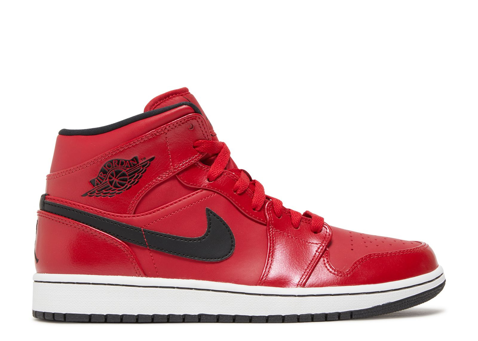 The Air Jordan 1 Retro Mid 'Gym Red' shows off a two-tone color scheme that stays true to the silhouette’s Chicago roots. The all-red upper makes use of two different varieties of leather, accented with contrasting black hits on the Swoosh, collar lining and ‘Wings’ logo. The mid-top is finished with Jumpman branding at the tongue tag and heel. SKU: 554724 602 Colorway: Gym Red/Black-White Release Date: 6/19/14