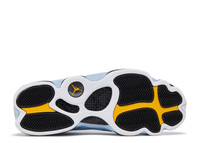 The Air Jordan 13 Retro ‘Blue Grey’ has a smooth, white leather upper bolstered with a rivet-style stitched panel. A blueish grey synthetic suede overlay seamlessly wraps around the midfoot and heel. A yellow Jumpman logo rests on the tongue and while the eye-catching holographic eye is embedded on the side of the ankle. A soft and lightweight Phylon midsole couples with bouncy Zoom Air forefoot and heel units. Black accents underfoot reveal a panther paw outsole with herringbone traction pods and a visible carbon fiber shank plate. SKU: 414571 170 Colorway: White/Yellow Ochre/Blue Grey/Black Release Date: 2/10/24
