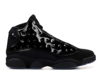 Featuring a look similar to the 'Black Cat' iteration, the Air Jordan 13 Retro 'Cap and Gown' stands out with its udpated build. The shoe's monochromatic colorway includes patent leather overlays on its suede base. Underfoot, the panther's paw tooling incorporates Zoom Air for cushioning and a carbon fiber plate for stability. Up top, the signature hologram logo has also been blacked out. SKU: 414571 012 Colorway: Black/Black/Black Release Date: 4/27/19
