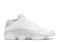 The Air Jordan 13 Retro Low ‘Pure Money’ features the the brilliant color scheme borrowed from the Air Jordan 4 of the same name. The upper combines tumbled white leather with suede paneling in Pure Platinum, with a metallic silver Jumpman replacing the traditional ‘cat eye’ hologram on its full-sized counterpart. Herringbone patterns on the panther-paw outsole delivers enhanced traction underfoot. SKU: 310810 100 Colorway: White/Metallic Silver/Pure Platinum Release Date: 5/20/17