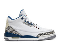 The 'True Blue' Jordan 3 updates the 2003 retro model using a Jumpman logo to replace the Nike Air logo on the heel. These shoes sport a tumbled white leather upper with blue accents on the midsole, eyelets and collar lining. A red Jumpman logo on the tongue gives them that final color hit. SKU: 136064 141 09 Colorway: White/True Blue Release Date: 8/1/09