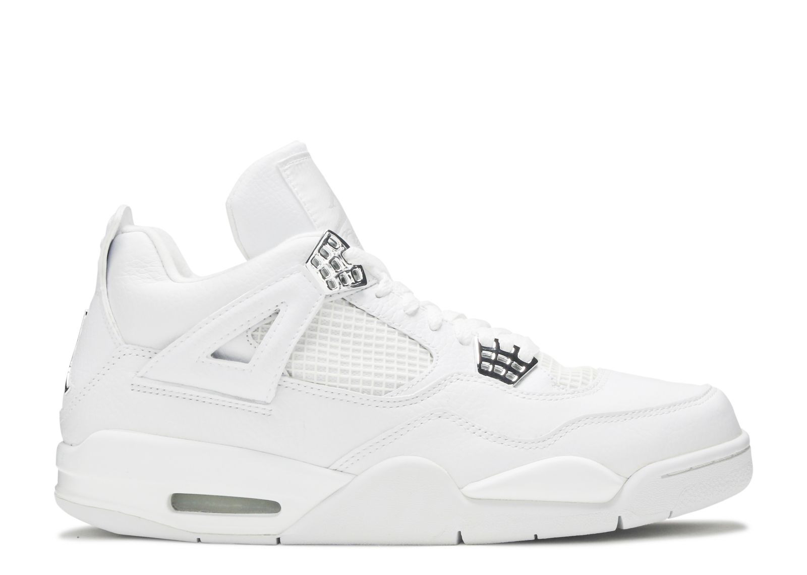 Landing on store shelves in 2006, the Air Jordan 4 ‘Pure Money’ delivers an ultra-clean take on the classic silhouette. The minimalist design is highlighted by a monochromatic white leather upper, accented with chrome detailing on the molded eyelets and Jumpman logo at the heel tab. The latter component is built with matching white leather, as are the shoe’s signature wings. SKU: 308497 102 Colorway: White/Metallic Silver Release Date: 5/20/06
