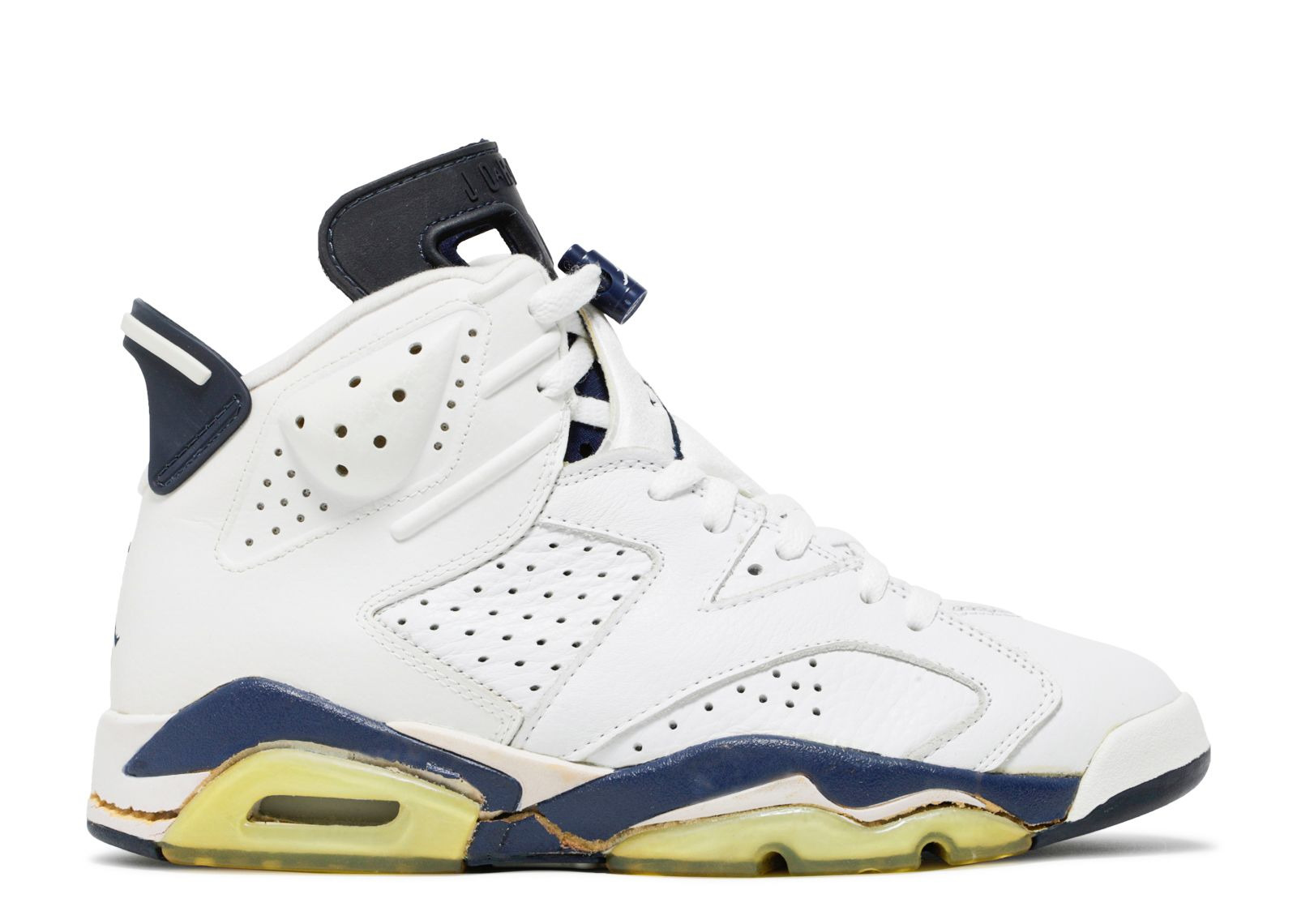 The Air Jordan 6 Retro 'Midnight Navy' was one of three colorways to hit store shelves in 2000, marking the first ever return of the classic silhouette. The simple design is reminiscent of the OG ‘Sport Blue’ colorway, with Midnight Navy replacing the royal blue detailing of the original. The rest of the upper is constructed from monochromatic white leather, accented with Jumpman branding at the heel. SKU: 136038 141 Colorway: White/Midnight Navy Release Date: 10/4/00