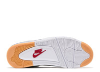 The Nike SB x Air Jordan 4 Retro SP 'Navy' sports a white leather upper with a grey suede forefoot overlay and side panel netting. A red Jumpman embellishes the tongue, while an embossed Nike SB logo adorns the navy heel tab. More navy accents decorate the eyelets and foam midsole, which showcases a visible Nike Air unit in the heel. A herringbone-patterned outsole uses gum rubber in high-wear areas for enhanced durability. SKU: DR5415 100 Colorway: Summit White/White/Navy/Neutral Grey/Gum Yellow/Varsity Red Release Date: 4/15/25