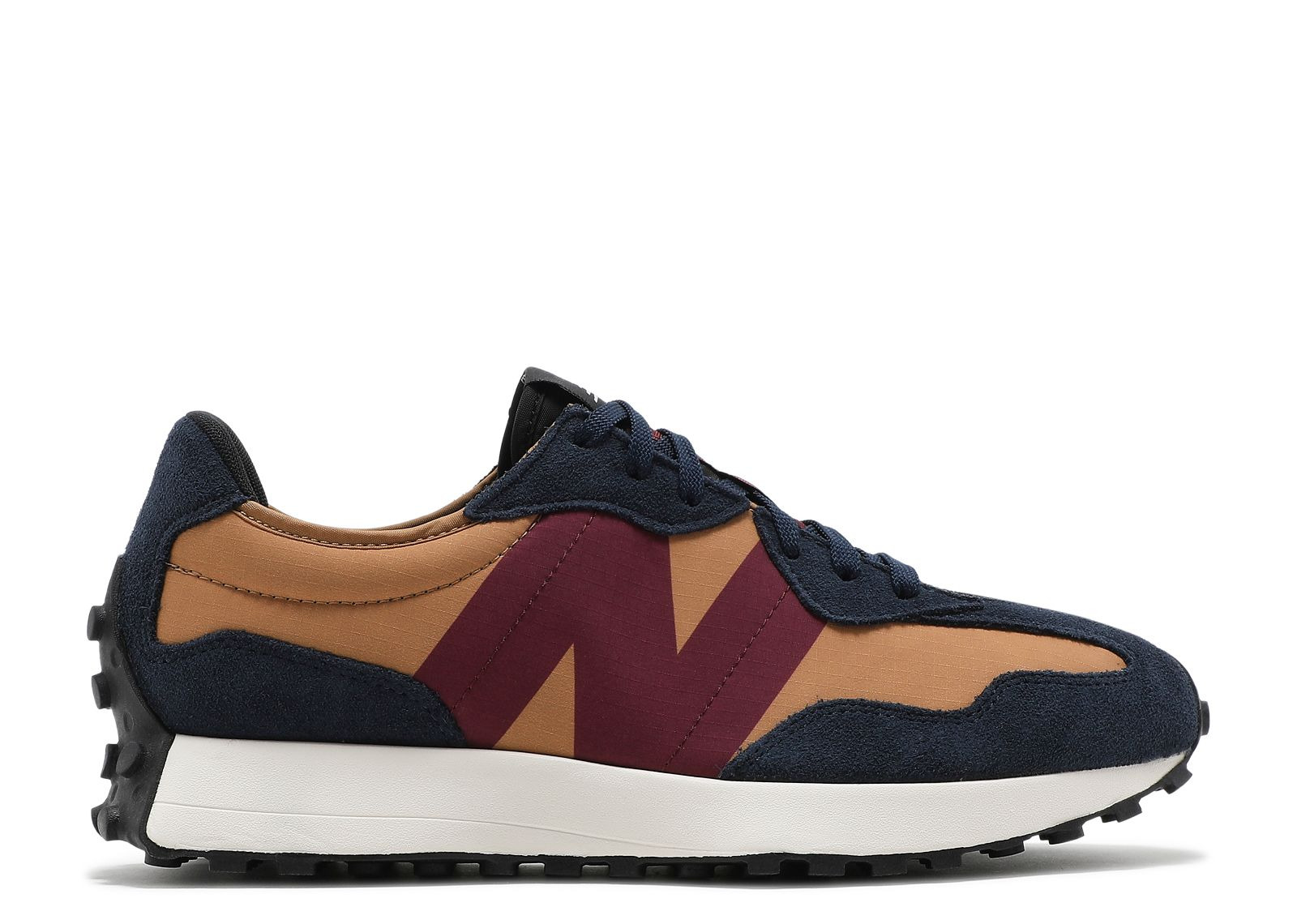 Inspired by 70s runners, the 327 'Natural Indigo Faded Workwear' emerges with a subdued, yet vibrant, mix of hues. The shoe's textile base appears in orange, overlaid by Natural Indigo suede on the toe, eyestay and heel. Dark red 'N' branding marks the side wall, while the look is contrasted underfoot by the white EVA midsole, with a studded rubber outsole offering traction. SKU: MS327TA Colorway: Natural Indigo/Faded Workwear Release Date: 4/11/21