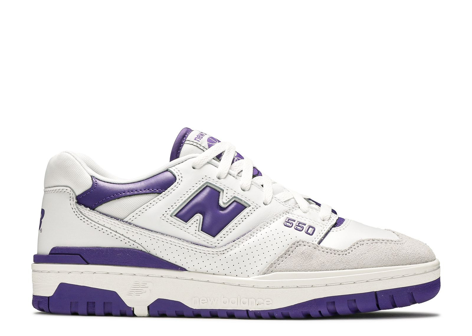 Released in June 2021, the 550 'White Purple' brings back the 1989 basketball shoe with a two-tone colorway. The shoe's upper is built with leather, finished in white and overlaid by tonal suede at the forefoot. Purple highlights the design throughout, including on the TPU heel counter, while perforations are included for breathability. Underfoot, a rubber cupsole with an exposed EVA wedge on the medial side provides cushioning. SKU: BB550WR1 Colorway: White/Prism Purple Release Date: 6/24/21