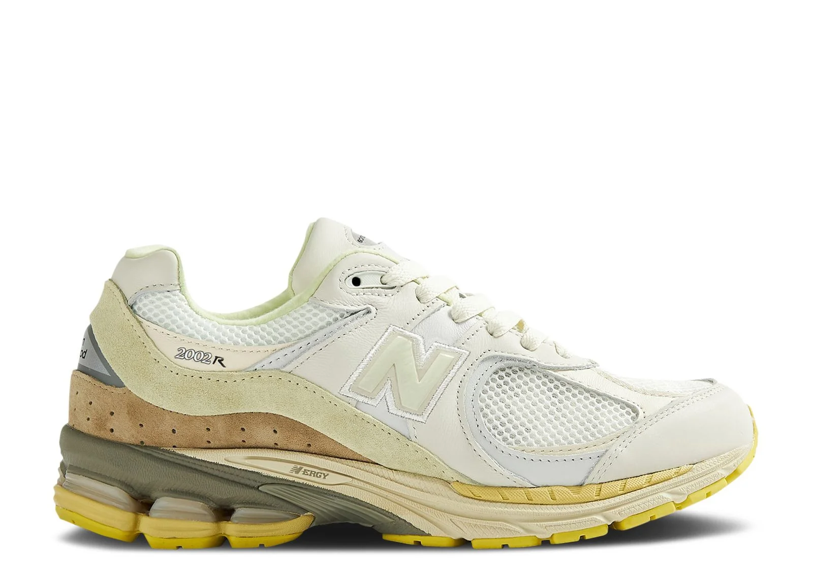 The AURALEE x New Balance 2002R ‘White’ takes a minimalist approach with a white open-cell mesh upper and matching leather panels on the forefoot and sides. Brown and beige suede overlays wrap around the heel, while a pale green knit collar lining adorns the look. Silver pops on the toe box and heel aid visibility in low-light conditions. A responsive N-ergy midsole has sculpted, lime-green sidewalls to complete the design. SKU: M2002RA1 Release Date: 9/11/22