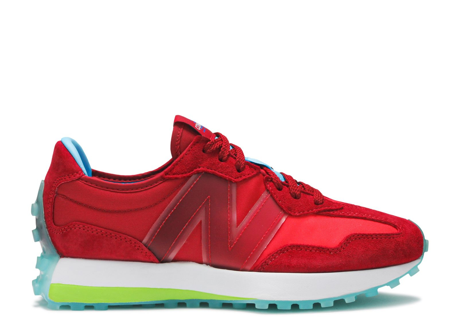The Concepts x 327 'Cape' released as part of a collaboration with the Boston retailer. Built with a mix of nylon and suede, the upper appears in red, inspired by Cap Cod's cranberry bogs and the Cape Codder cocktail. The green hit on the midsole adds a further callout to the drink, while co-branding marks the tongue tag. Underfoot, the lugged rubber outsole sports an icy blue finish. SKU: MS327CSC Release Date: 8/7/20