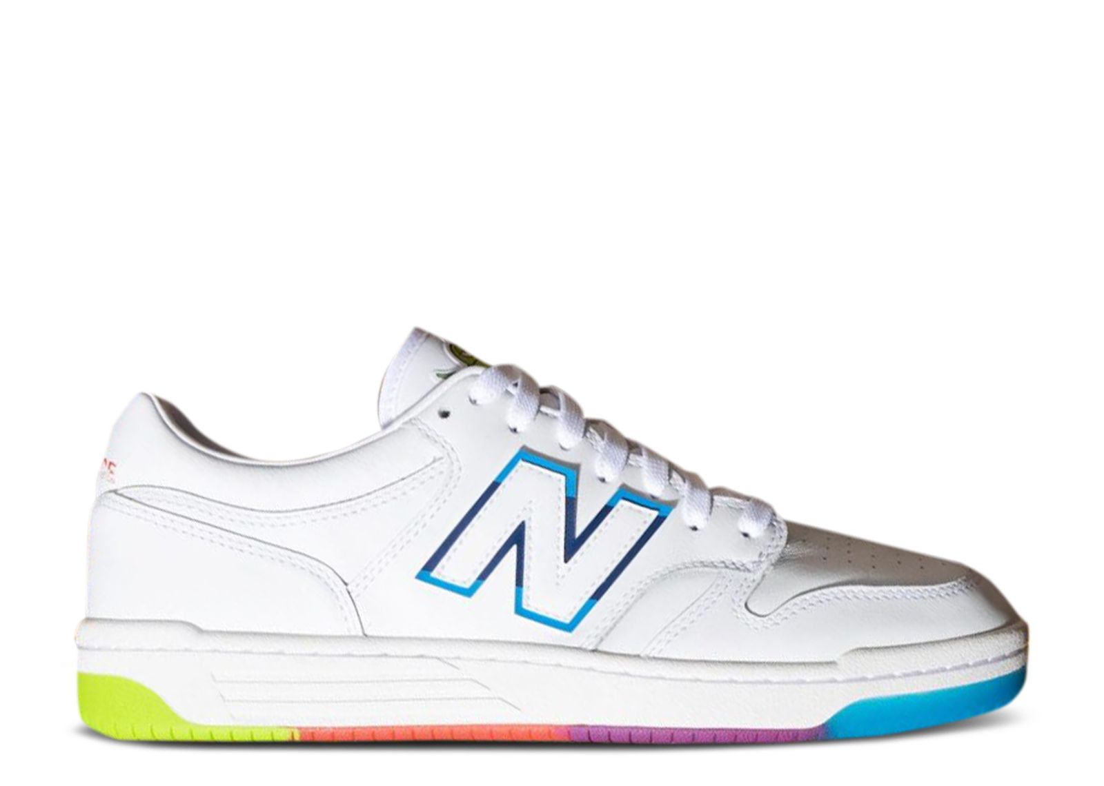 Drawing from Kawhi Leonard's favorite childhood candy, the Jolly Rancher x 480 Low 'Original Flavors' released as part of a larger collection. The shoe's upper features a largely neutral look, built with leather and finished in white. The border of the 'N' logo adds color to the upper, while the Jolly Rancher Fruit Gang, sporting Leonard's neutral expression, emerges on the tongue. Underfoot, the rubber outsole highlights the look with a series of vibrant hues. SKU: BB480LJY Release Date: 10/31/20
