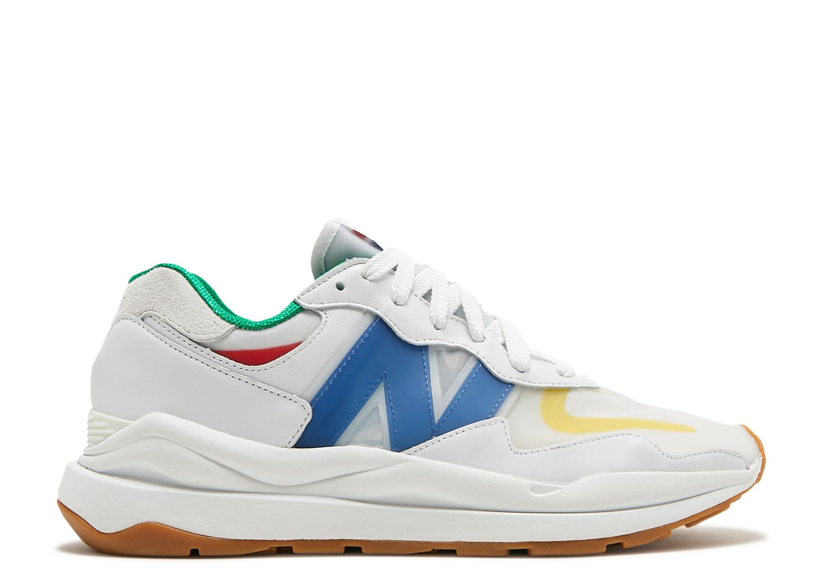 The STAUD x New Balance 57/40 ‘White Blue Quartz’ sports a double-stacked foam midsole, anchored by a strong gum rubber outsole. The white knit upper is complemented by matching leather overlays, while contrasting yellow and red touches join a large, marine blue ‘N’ logo. ‘STAUD’ is embedded on the suede heel tab, while both brand logos adorn the tongue tag and insoles. SKU: M5740SR Colorway: White/Blue Quartz Release Date: 10/26/21