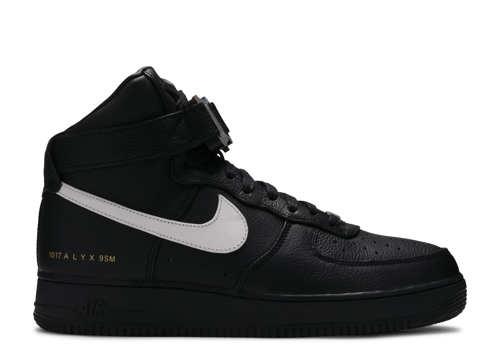 The 1017 ALYX 9SM x Air Force 1 High 'Black White' released as part of a collaboration with Matthew Williams' fashion brand. Built with tumbled leather, the upper appears in black, contrasted by the white Swoosh branding on the side wall. Gold-foil branding emerges on the lateral heel, while ALYX's signature anodized buckle supports the adjustable ankle strap. The Air midsole provides cushioning. SKU: CQ4018 002 Release Date: 1/16/20