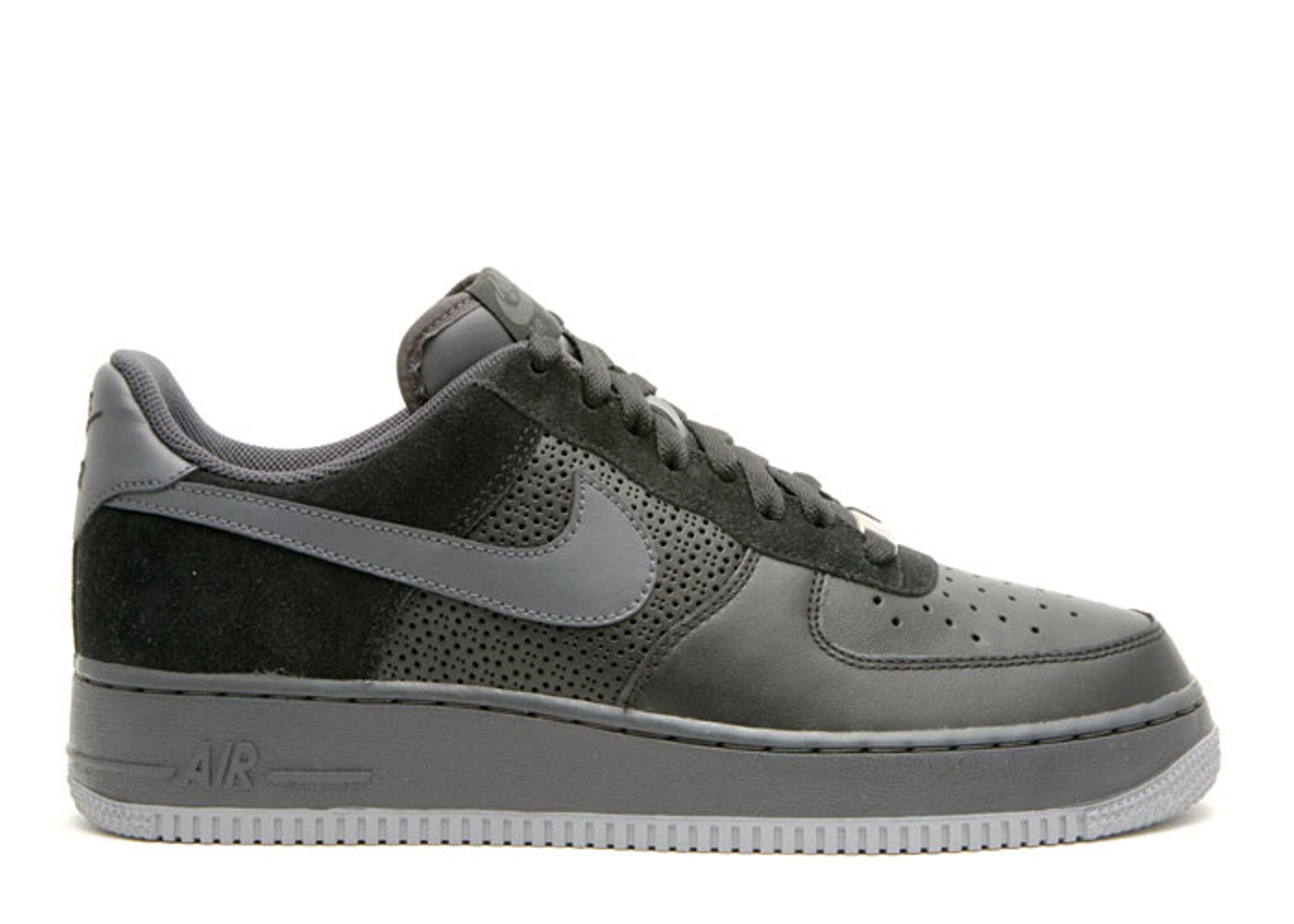 The Air Force 1 '07 'Anthracite Stealth,' dropped in 2008, making use of a suede back panel that extends to the eyestay, while the mid-panel has perforations of different widths in a concentric pattern. The AF1s classic forefoot perforations maintain the signature look. SKU: 315122 004 Colorway: black/anthracite-stealth