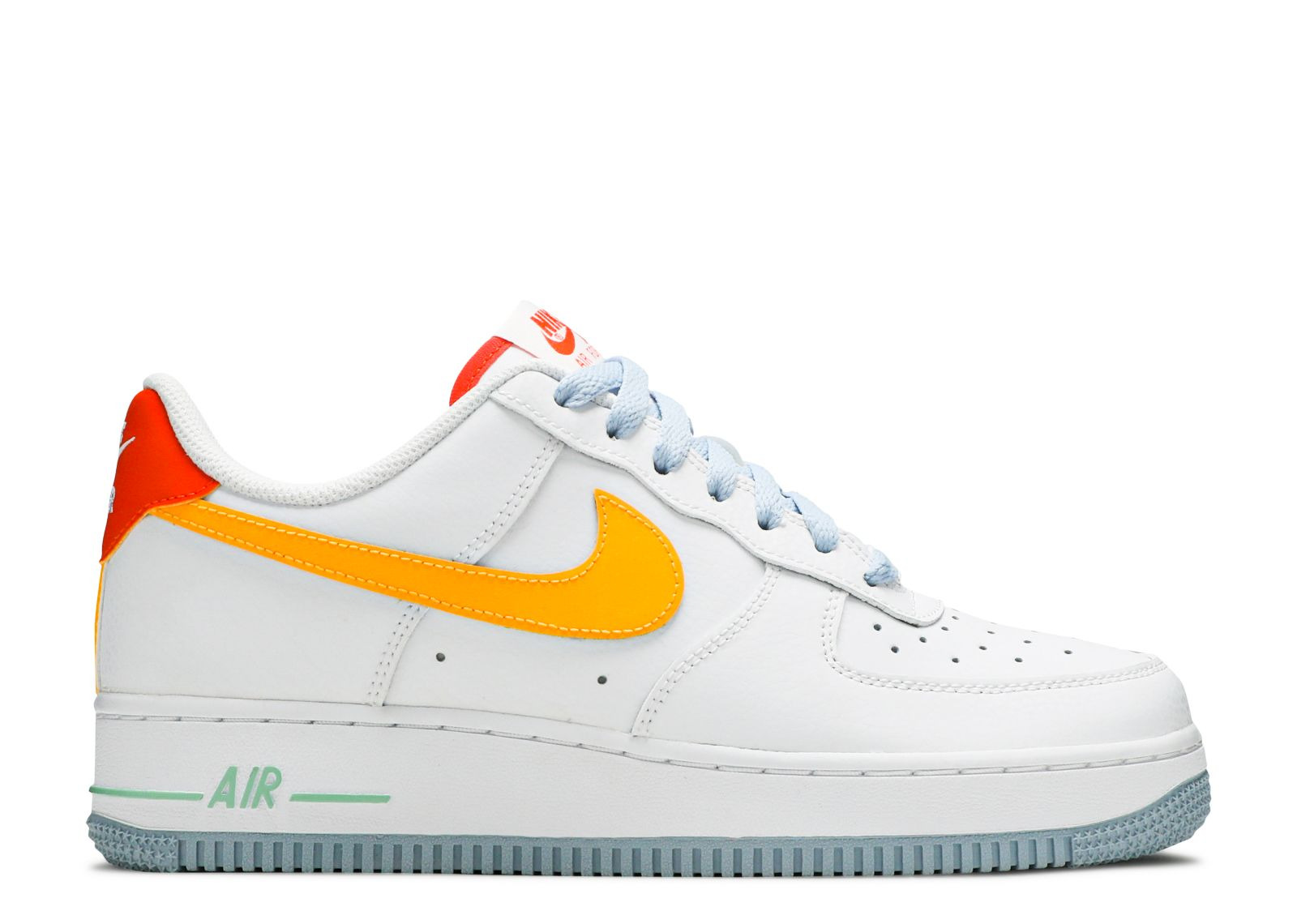 Released in November 2020, the Air Force 1 '07 LV8 'Be Kind' celebrates World Kindness Day. Featuring a white leather base, the shoe's upper is highlighted by Laser Orange and Electro Orange on the Swoosh, heel patch and tongue. Armory Blue marks the laces, while 'Be Kind' is embroidered down the heel. Underfoot, the foam midsole houses the usual Air for cushioning, with a concentric rubber outsole offering traction. SKU: DC2196 100 Colorway: White/Laser Orange/Light Armory Blue Heather/Electro Orange Release Date: 11/13/20