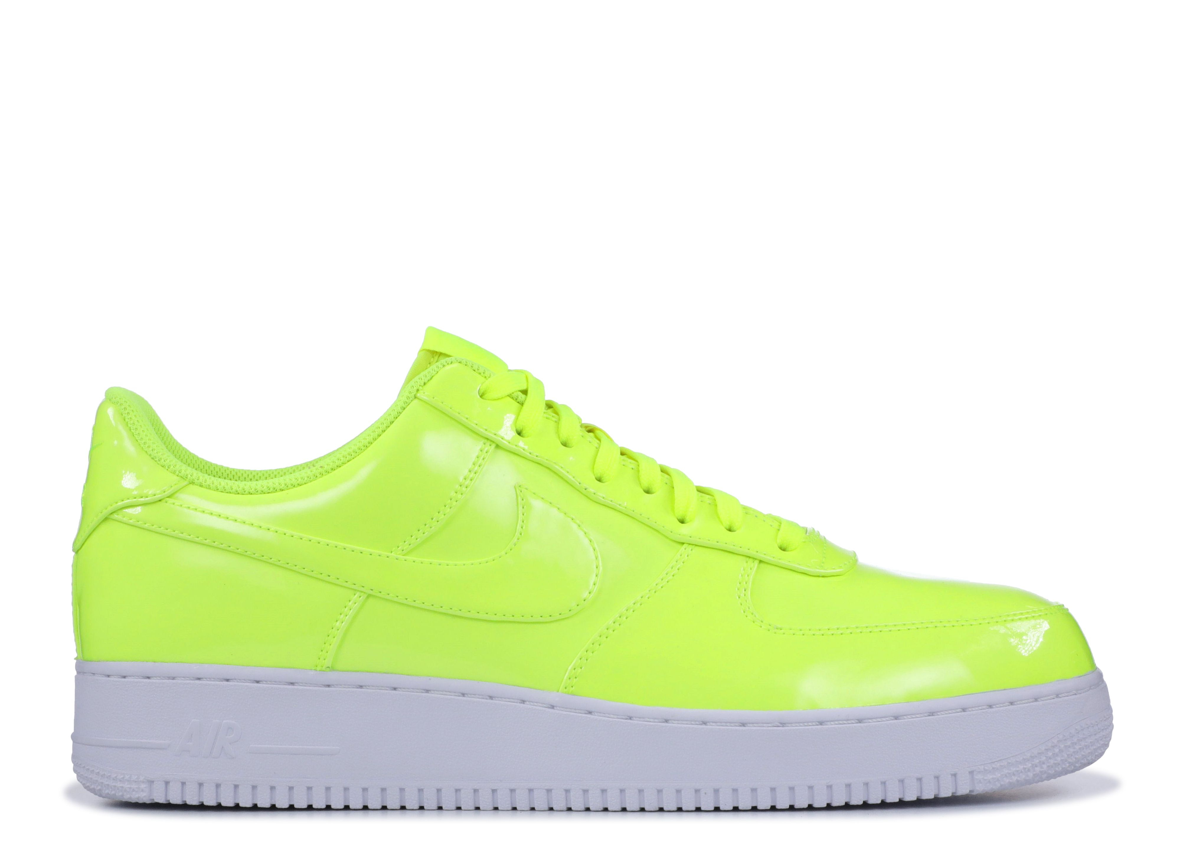 Putting a modern spin on a beloved basketball silhouette, the Air Force 1 '07 LV8 UV 'Volt' features a neon green patent leather upper sitting atop a classic white midsole and outsole. Boasting a UV treatment, an allover Nike Air logo print becomes visible when exposed to direct sunlight. SKU: AJ9505 700 Colorway: Volt/Volt-White-White Release Date: 3/24/18