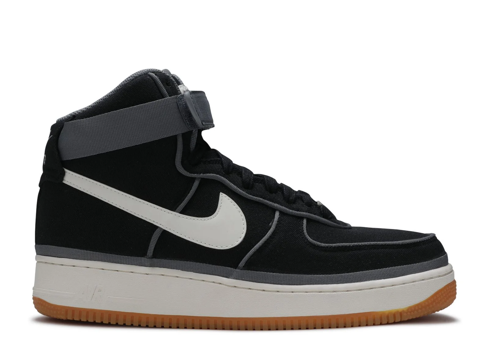 Modeled after the 1982 original, the Nike Air Force 1 High 07 LV8 sneaker unites past and present style elements of the classic AF1. Its upper features a soft textile in black, trimmed with grey piping. The high-cut collar is supported by an adjustable ankle strap. The signature Swoosh decorates the exterior at both sides of the quarter panels. Underfoot, the midsole offers soft support above the duo-tone rubber outsole. SKU: 806403 004 Colorway: black/sail-team orange-gum light brown Release Date: 1/1/19