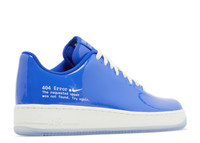 Available exclusively to members of the web3-enabled platform .SWOOSH, the Nike Air Force 1 Low '404 Error' was created as a nod to the web page announcing content has been removed or transferred to a different site. This minimalist design sports a glossy one-piece blue patent leather upper, highlighted by printed text on the side of the heel, which reads: '404 Error. The requested upper was not found. Try again.' These shoes ride on a foam midsole, equipped with an encapsulated Air-sole unit and a rubber outsole. SKU: HJ1060 400 Colorway: Racer Blue/White Release Date: 4/23/24