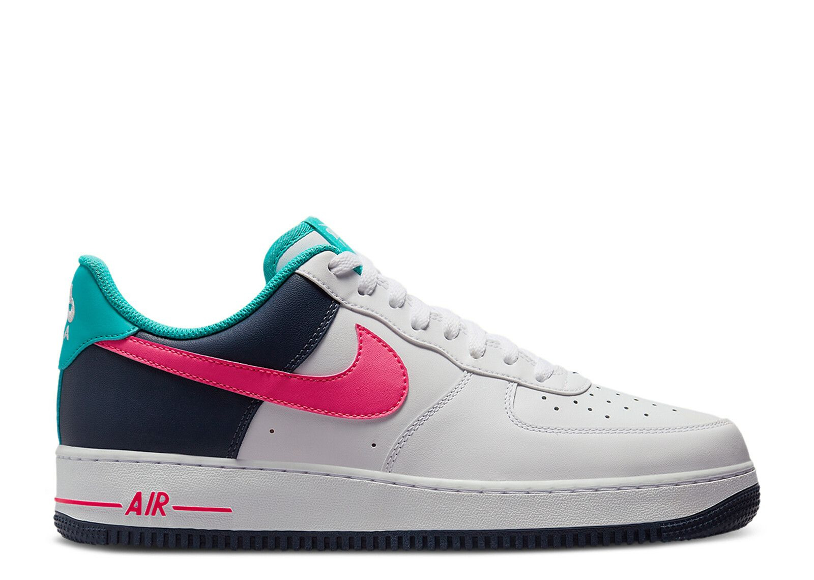 Lively pops of color make up the Nike Air Force 1 Low '90's Neon Pack' shoes. They have a white leather upper with a dark navy heel overlay and a mismatched Swoosh with fuschia and yellow logos. Teal accents land on the tongue, collar lining and back tab. A durable rubber cupsole works in tandem with an Air-sole heel unit for plush cushioning. SKU: HF4849 100 Colorway: Neon Blue/Teal/Green/Gold Release Date: 4/1/24