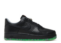 Designed for Halloween, the Nike Air Force 1 Low Premium 'Headless Horseman' features a black tumbled leather upper with snakeskin-textured forefoot and heel overlays in the same tone. The sturdy rubber cupsole with black sidewalls rests on a marbled rubber outsole in vivid Green Strike. Silver Jack-o'-lantern dubrae charms adorn the waxed black laces, and the custom sockliners feature an illustration of a Jack-o'-lantern set against a haunted forest. To introduce a subtle pop of color, an orange Nike tag adorns the tongue. SKU: FQ8822 084 Colorway: Black/Smoke Grey/Campfire Orange/Black Release Date: 10/26/23