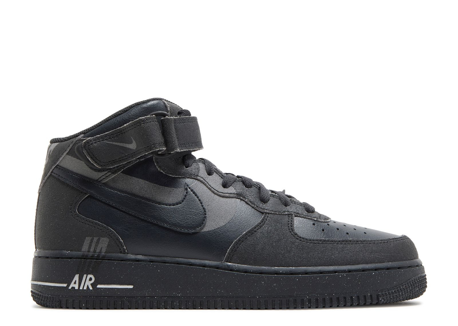 The Nike Air Force 1 Mid ‘07 ‘Halloween’ honors the October 31 holiday by using a stealthy design. A black leather upper sports a matching Swoosh with a reflective shadow Swoosh next to it. These shoes are accented with cracked leather overlays on the forefoot and heel, secured with standard shoelaces and an adjustable hook-and-loop ankle strap. The black midsole sports speckled details, accented with an embossed, metallic ‘Air’ wordmark. SKU: DQ7666 001 Colorway: Off Noir/Off Noir/Black/Light Smoke Grey Release Date: 11/8/22