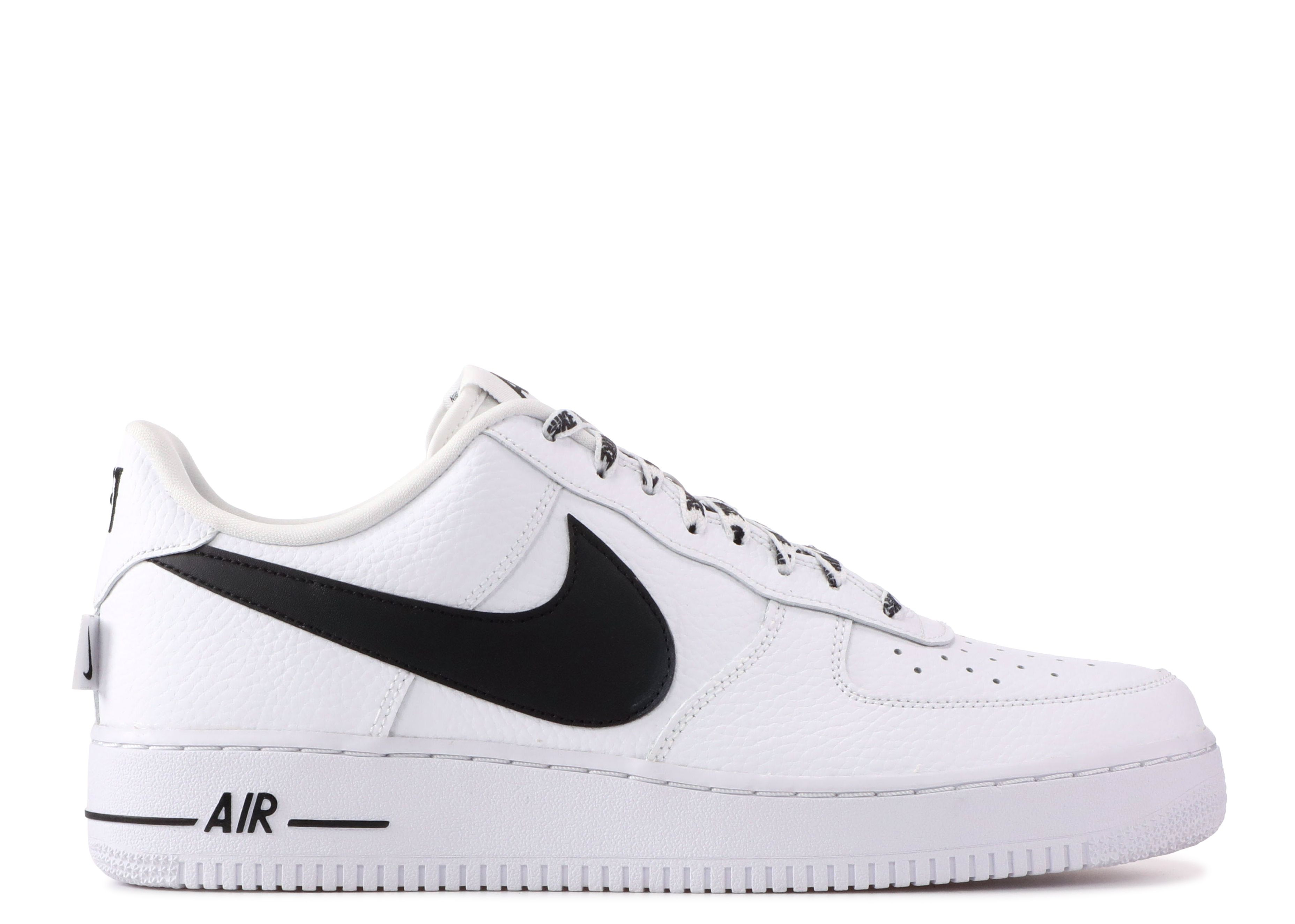 The Nike Air Force 1 'Statement Game' dropped in 2017 as part of a larger collaboration with the NBA. The retro silhouette features a tumbled white leather upper with an oversized black Swoosh and a woven NBA tab adorned with Jerry West’s iconic silhouette. Additional unique details include Nike printed laces and AF-1 branding on the tongue tag and heel tab. SKU: 823511 103 Colorway: White/Black Release Date: 10/12/17