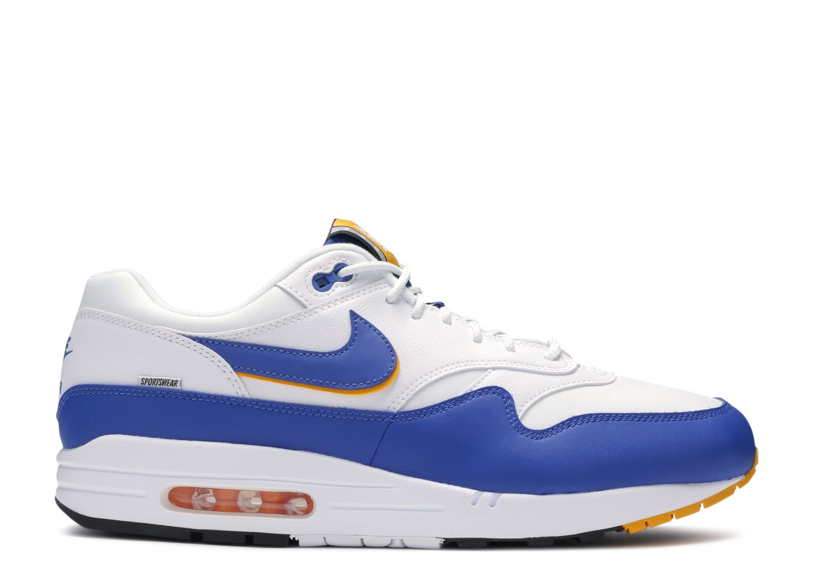The Air Max 1 SE 'Windbreaker' released in June 2019 with a look inspired by old-school windbreakers. The shoe features a leather upper construction with a white base, overlaid by Game Royal and University Gold. Underfoot, the midsole houses a University Gold Max Air unit in the heel for cushioning, giving way to a tricolor waffle outsole for traction. SKU: AO1021 102 Colorway: White/University Gold/Black/Game Royal Release Date: 6/17/19