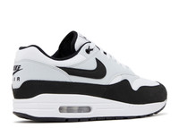 The Nike Air Max 1 'White Black' sports a white mesh upper with platinum-colored synthetic suede overlays. The black mudguard matches the collar lining, molded eyelets and Swoosh. The Nike logo adorns the tongue tag and heel, while a soft foam midsole gets a visible Max Air unit for plush cushioning. SKU: FD9082 107 Colorway: White/Black/Pure Platinum