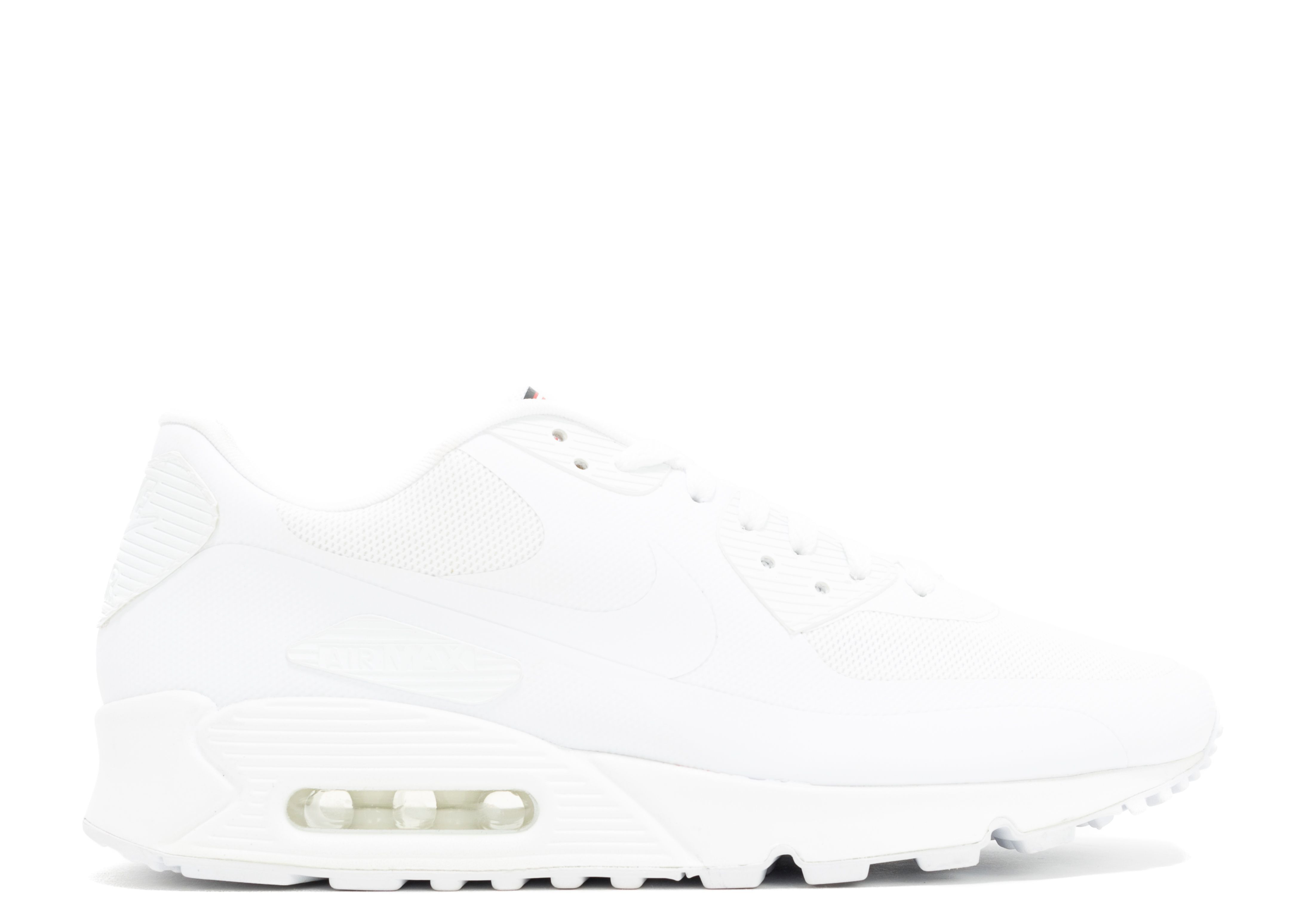 Releasing ahead of the Fourth of July, the Air Max 90 Hyp Qs 'USA' features a subtle patriotic hit. Part of a pack that included red and blue colorways in 2013, the shoe's Hyperfuse and breathable mesh upper is finished entirely in white, with a midsole, housing the usual Air, completing the tonal look underfoot. However, the tongue tag sports an American flag to complete the celebratory colorway. SKU: 613841 110 Colorway: White/White Release Date: 6/29/13