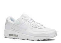 Featuring a clean colorway, the Air Max 90 'Triple White' released for 30 years of the silhouette. Built with mesh, the upper is overlaid by leather, finished entirely in white and complemented by the TPU eyelets and Air Max badges. A tonal midsole houses visible Max Air in the heel for cushioning, giving way to a rubber outsole for traction. SKU: CN8490 100 Colorway: White/White/White Release Date: 1/9/20