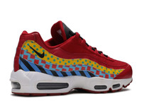 Part of Foot Locker and Nike's Home and Away series, the Air Max 95 'Baltimore Home' gives the nod to Baltimore's horseracing heritage. The shoe's suede and leather upper features vibrant printed overlays on its various layers, modeled after the look of saddle cloths and jockey uniforms. The tongue sports three crowns as a tribute to the Preakness Stakes, run in Baltimore as the second leg of the Triple Crown, while the classic tooling includes visible Air in the forefoot and heel. The shoe released alongside a 'Baltimore Away' colorway. SKU: CD7787 600 Colorway: Gym Red/Black-White Release Date: 3/15/19
