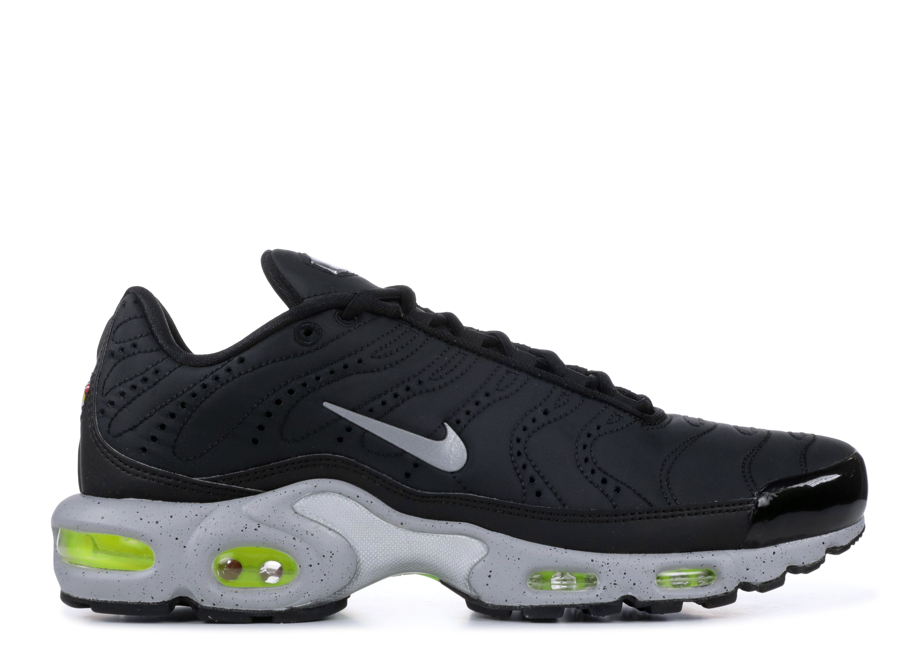 Sean McDowell invented the Air Max Plus on a beach in Florida. His design has since become a footwear exemplar and has been reconfigured countless times. The Air Max Plus Premium 'Matte Silver' features a black nylon upper detailed with an all-over wavy effect. The upper also boasts a reinforced toe box for structure and durability, and Matte Silver accents appear throughout. The sneaker also employs a full-length Volt-colored Tuned Max unit for responsive cushioning. SKU: 815994 003 Colorway: Black/Matte Silver-Volt Release Date: 10/5/18