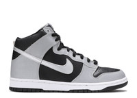 The updated 1985 hoops classic is crafted from black tumbled leather with grey overlays. Combining the comfortable last of the Nike Legend with the toebox, tooling, and traction of the Air Jordan 1, Nike designer Peter Moore created the Dunk High. This iconic basketball shoe from the mid-80s played a significant role in revitalizing college basketball through its advertising campaign known as 'Be True to Your School.' SKU: 630383 001 Colorway: Black/Metallic Silver