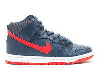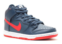 The Dunk High Pro Sb emerges here with a tumbled leather upper finished entirely in Squadron Blue. The Swoosh adds bright contrast in University Red, while the high-top shoe is supported by a padded nylon tongue and mesh collar. A white midsole gives way to rubber outsole with a final hit of University Red. SKU: 305050 463 Colorway: Squadron Blue/White/University Red Release Date: 5/1/13