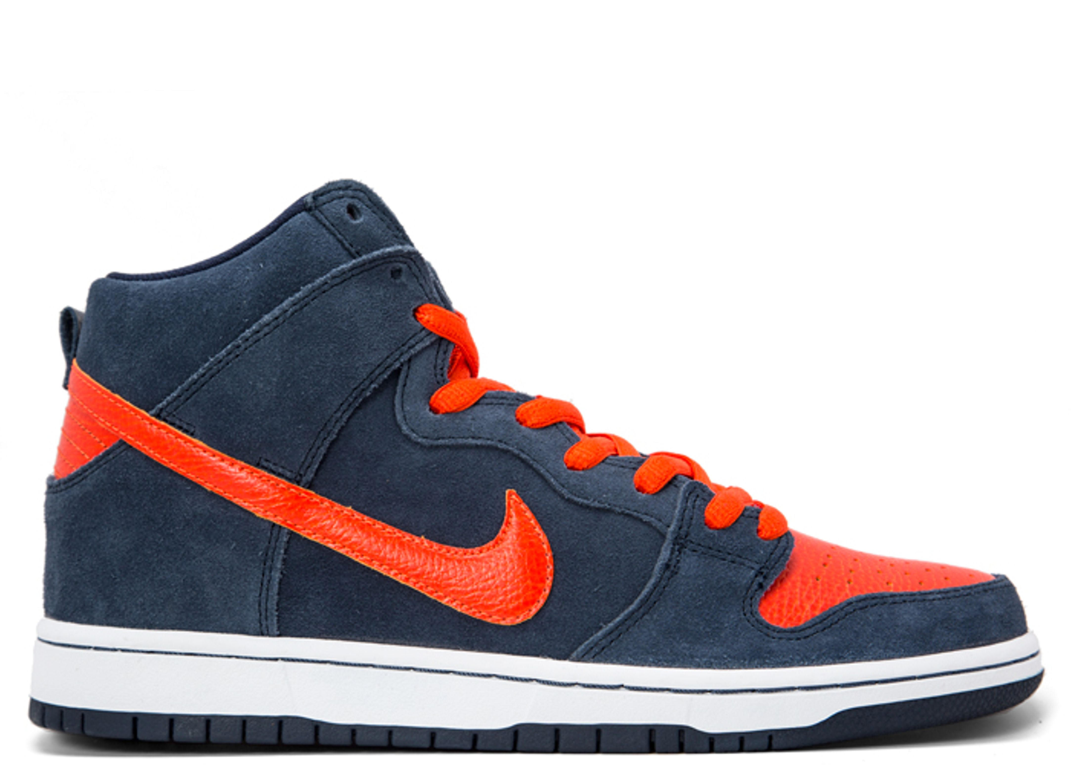 The Nike SB Dunk High Pro 'Syracuse' sneaker draws inspiration from the team colors of Syracuse University, and returns with a premium construction and an updated colorway. This version of the shoe was released in March 2015 and features an Obsidian and Team Orange color palette instead of the original orange and white scheme from 2005. The shoe's upper is made of suede and has tumbled leather on the toe box and Swoosh, while the outsole is made of rubber. SKU: 305050 481 Colorway: Obsidian/Team Orange-White