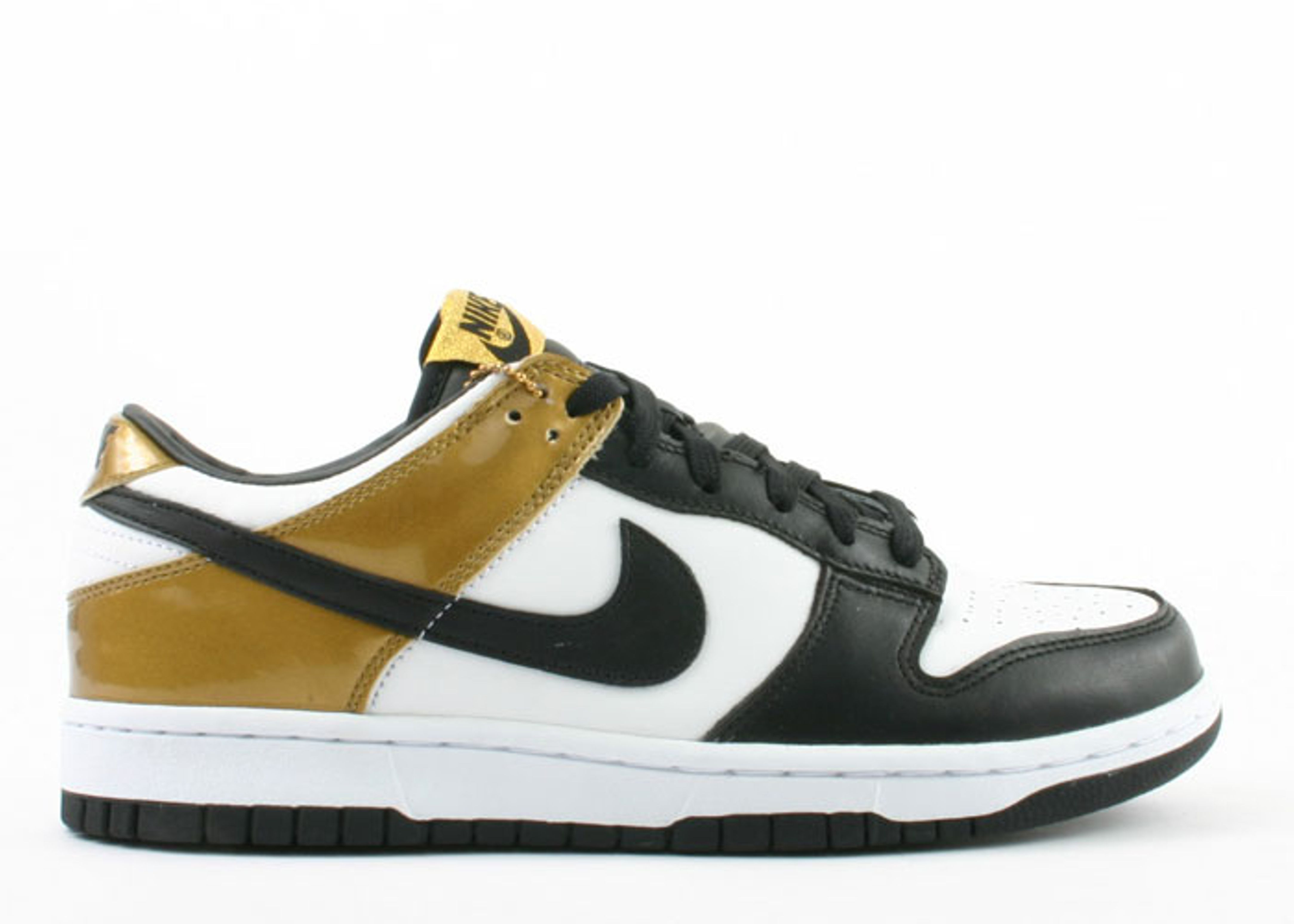 The Nike Dunk Low Metallic Gold was introduced in 2005, featuring a contemporary twist on the iconic basketball shoe. Originally released in 1985, the Dunk was designed with team-specific colorways, allowing players to match their sneakers with their uniforms. This updated version showcases shiny gold accents on a black and white leather upper. The sneaker is finished off with a durable cupsole and rubber tread for superior traction. SKU: 309431 103 Colorway: White/Black-Metallic Gold