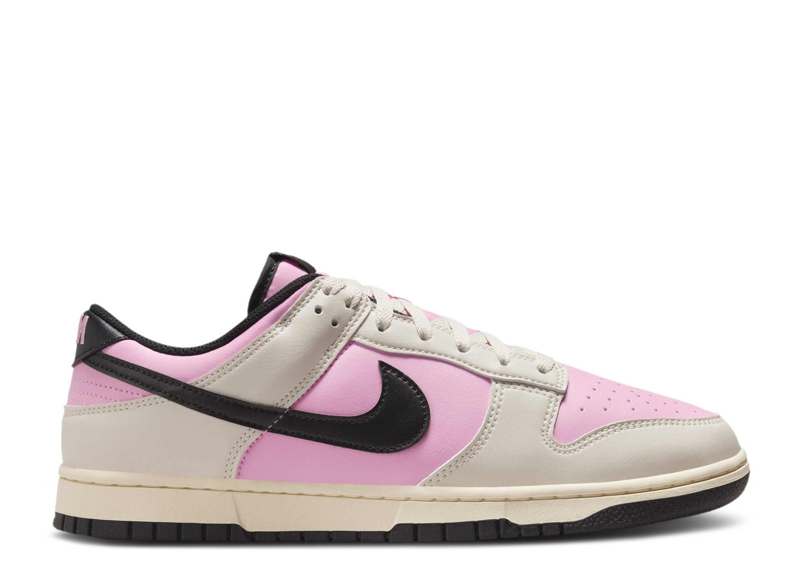 The Nike Dunk Low 'Pink Rise Light Orewood Brown' sports a pastel pink leather upper tooled with light tan forefoot and heel overlays. A contrasting black Swoosh matches the Nike-branded tongue tag, collar lining and back tab. The rubber cupsole has off-white sidewalls, paired with a sturdy black rubber outsole. SKU: HF5441 600 Colorway: Pink Rise/Light Orewood Brown/Pale Ivory/Black Release Date: 3/19/25