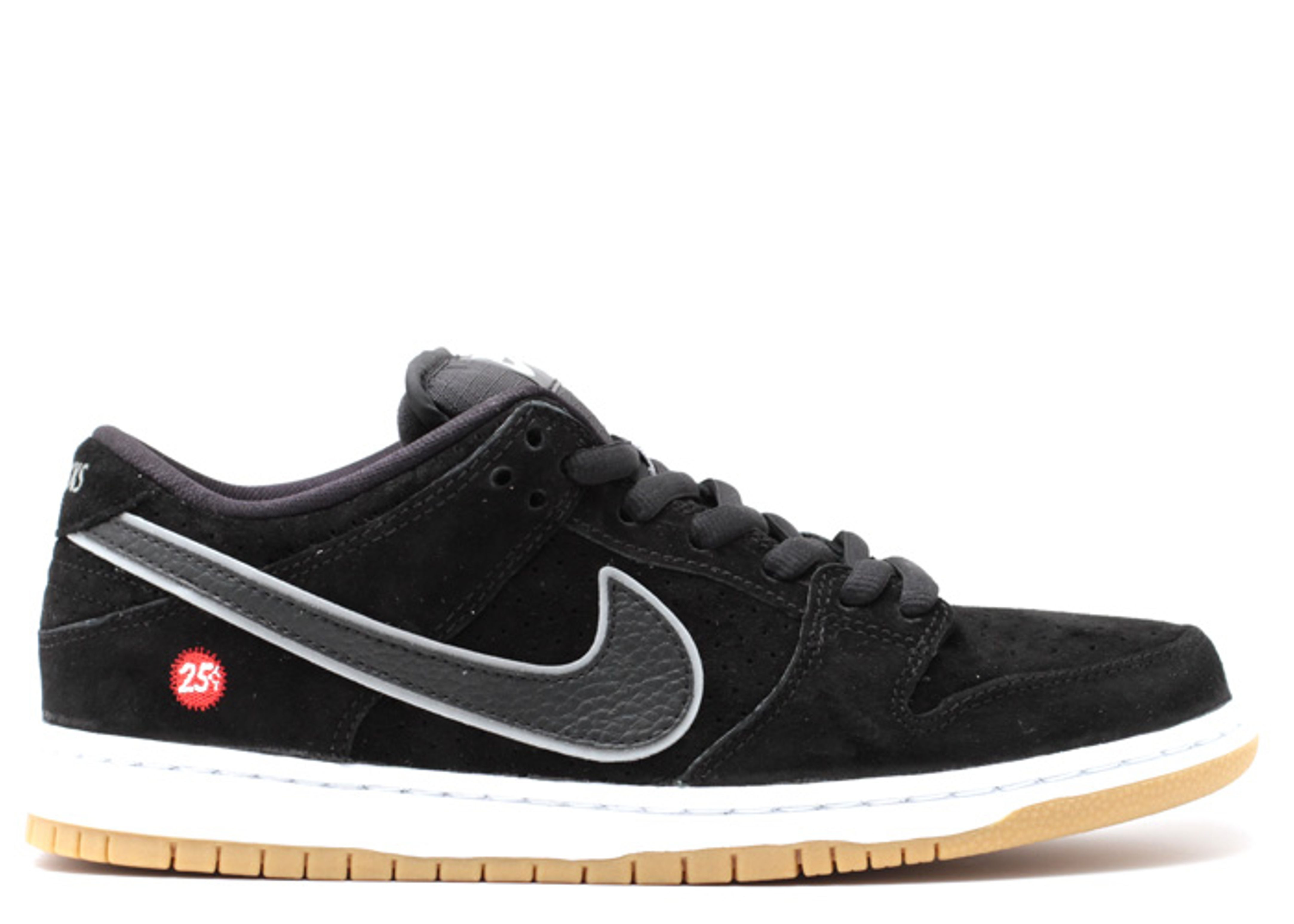 New York skate magaizne Quartersnacks joined Nike to create the Dunk Low Premium SB 'Quartersnacks.' Featuring a black suede build throughout the upper, the shoe is complemented with a white-embroided, black tumbled leather Swoosh. 'Quarter' and 'Snacks' across the heels, as well as the 25 cent logo on the ankle, give the nod to the collaboration. SKU: 313170 019 Colorway: Black/Black-Reflect Silver Release Date: 8/23/14