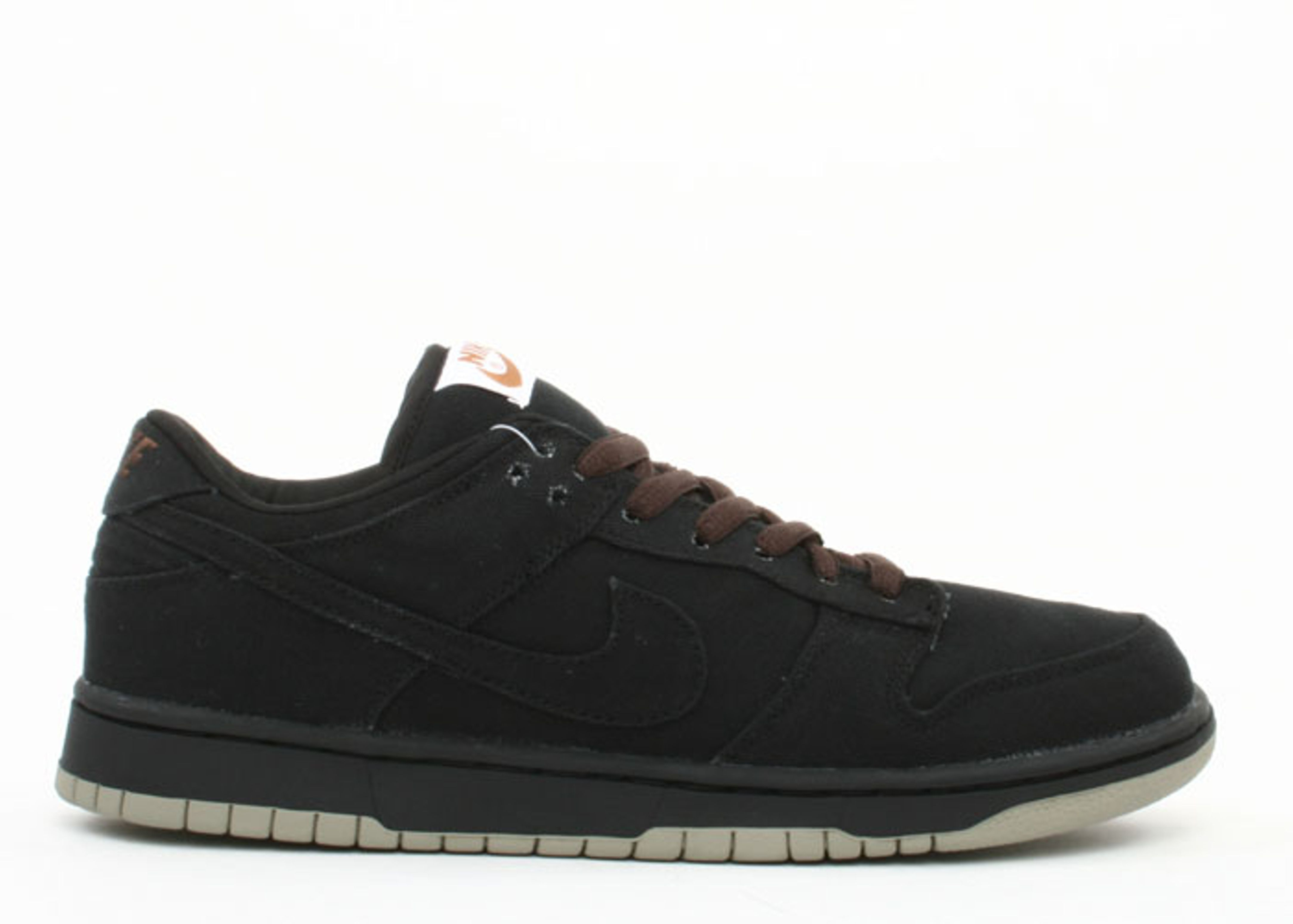Launching in 2004 during the brand’s Silver Box era, the Nike Dunk Low Pro SB ‘Carhartt’ earns its unofficial nickname with a no-frills upper, constructed from rugged canvas in a monochromatic black finish. A matching black midsole gives way to gum rubber outsole, while the oval laces and Nike branding hits at the tongue and heel are rendered in a subdued brown hue. SKU: 304292 004 Colorway: Black/Black Release Date: 6/1/04