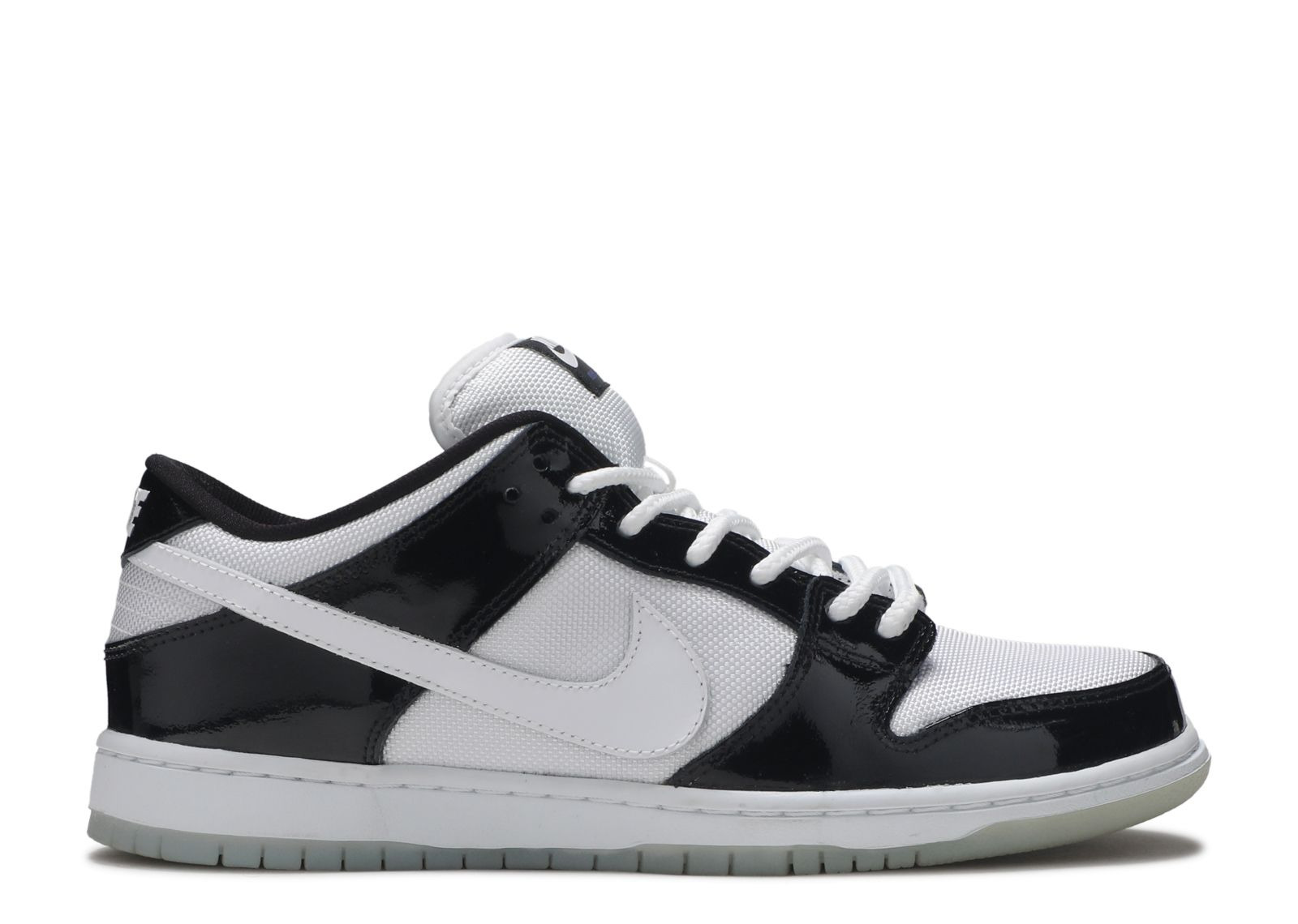 Nike SB borrows an iconic Air Jordan look with the Dunk Low Pro SB 'Concord.' The shoe's upper is constructed with white mesh underlays accented by black patent leather overlays, with a white Swoosh bisecting the design. A white midsole gives way to an icy blue outsole, a final nod the famous Air Jordan 11 'Concord.' SKU: 304292 043 Colorway: Black/Ice Blue-Dark Concord-White Release Date: 4/20/13